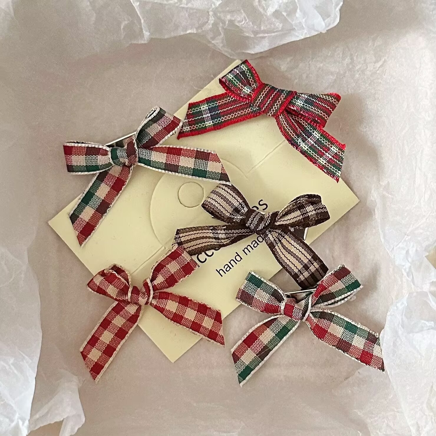 가을과 겨울 새로운 빨간 격자 무늬 활 한국어 스타일 간단한 올매치 소녀의 머리핀 머리 액세서리 클립스토어 가기
