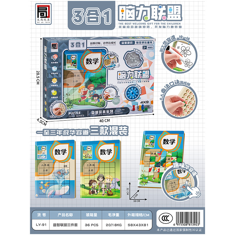 3-in -1 Huarong 도로 세트 슬라이딩 퍼즐 보드 어린이 교육 장난감 소년 초등학교 논리 공간 사고 훈련