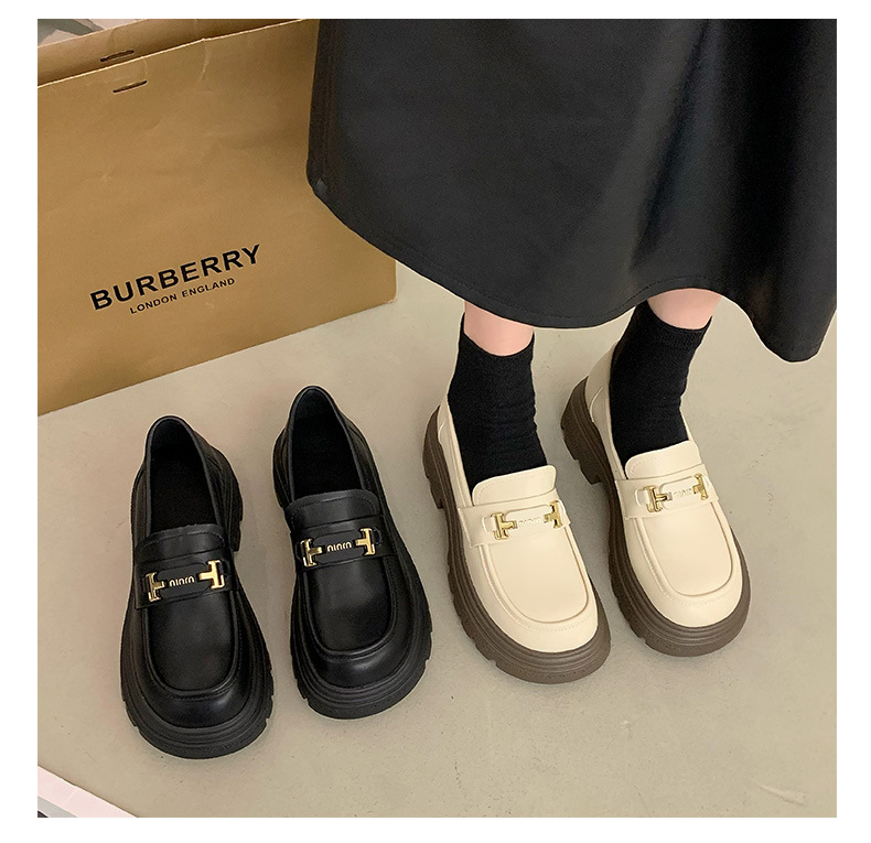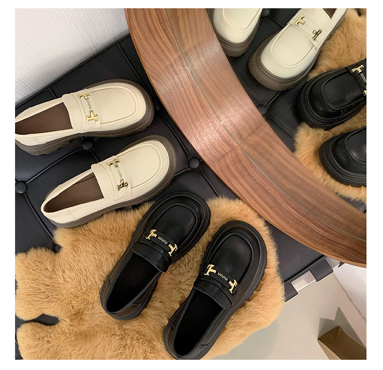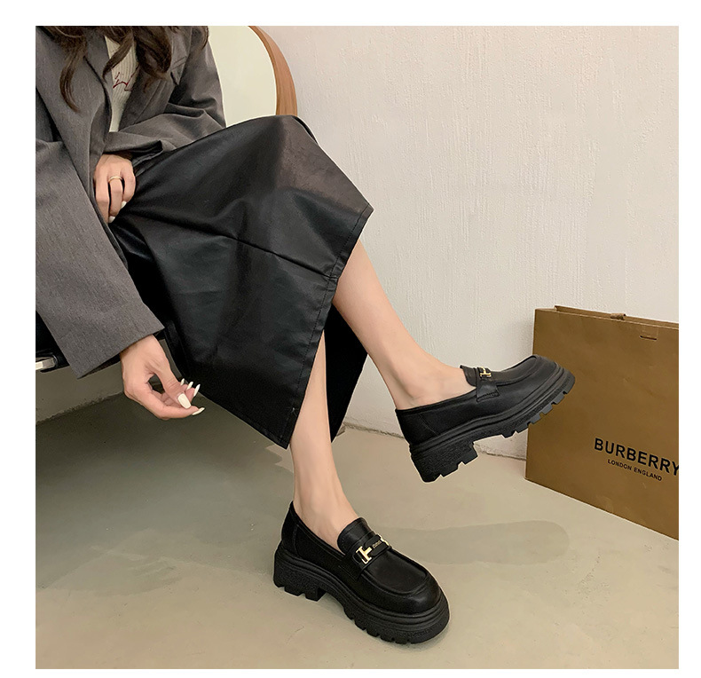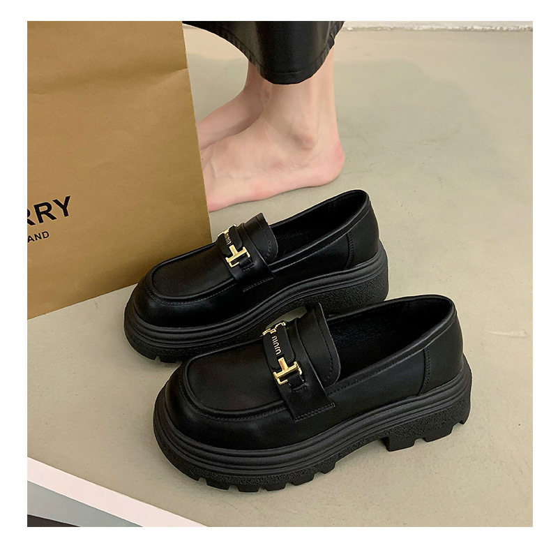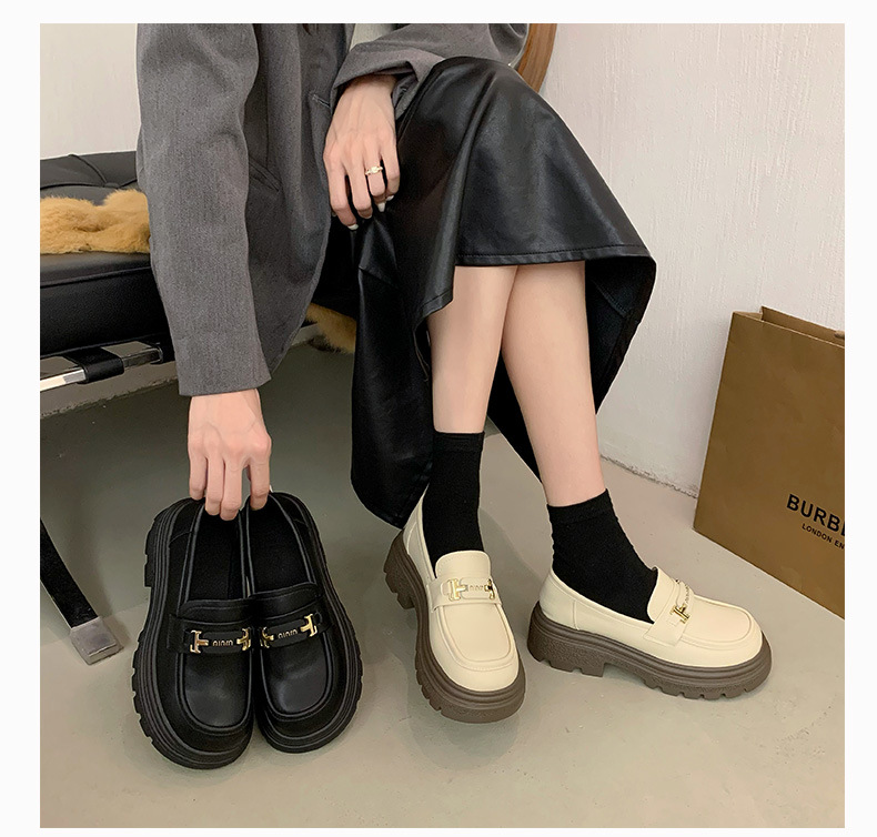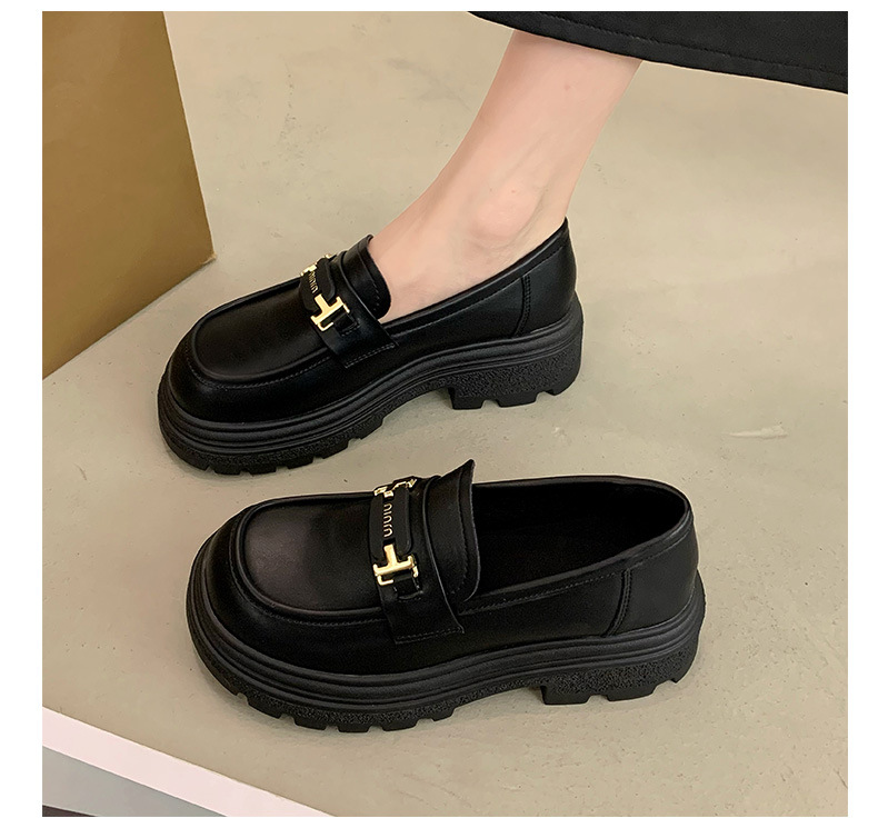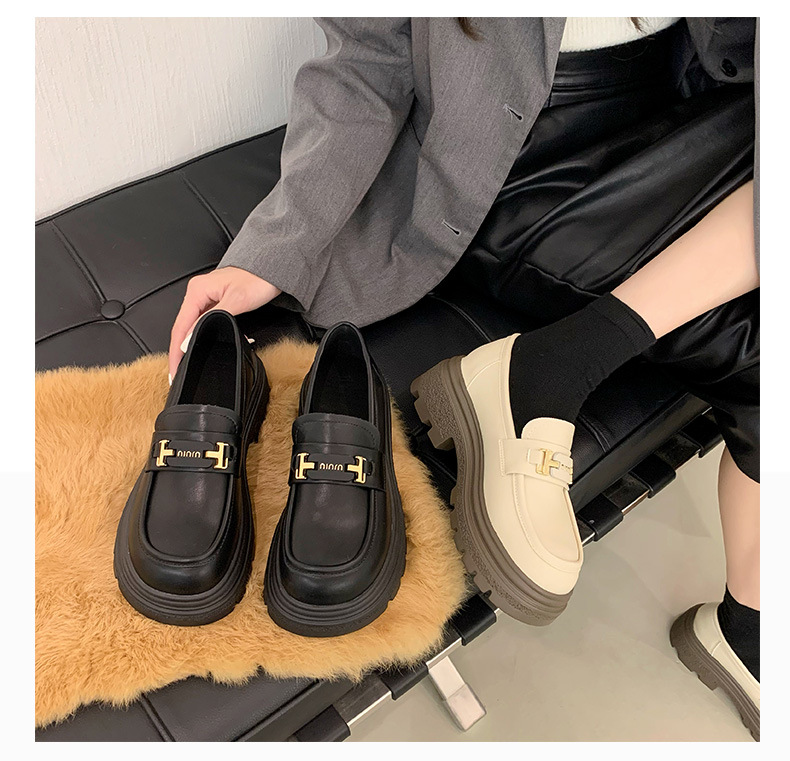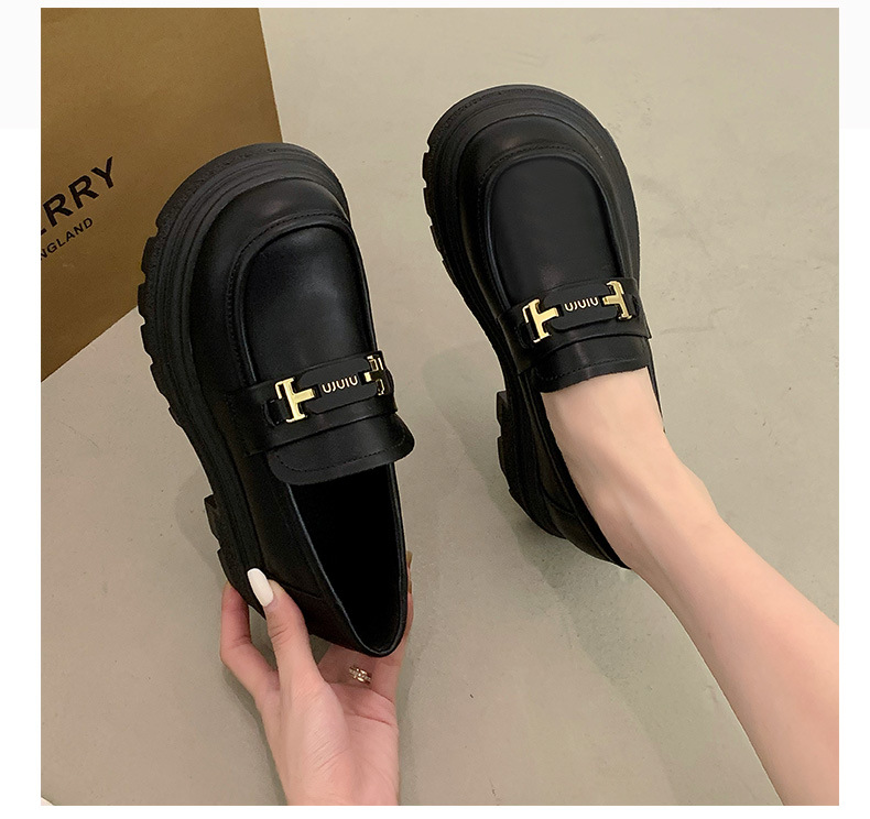 두꺼운 밑창 로퍼 여성 신발 2024 새로운 폭발 봄 여성 신발 머핀 조커 작은 가죽 신발 검은 싱글 레이어 신발스토어 가기