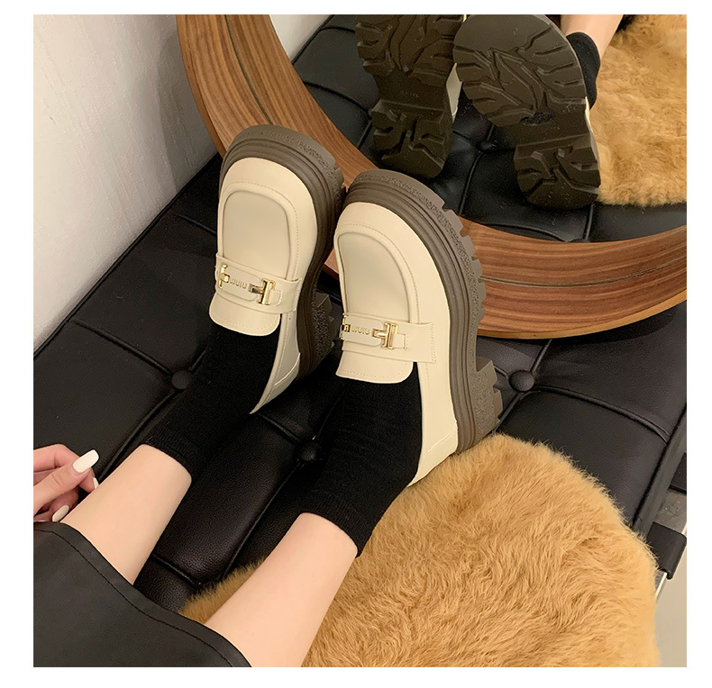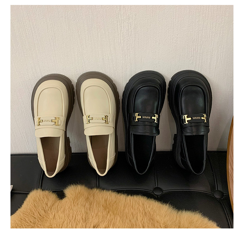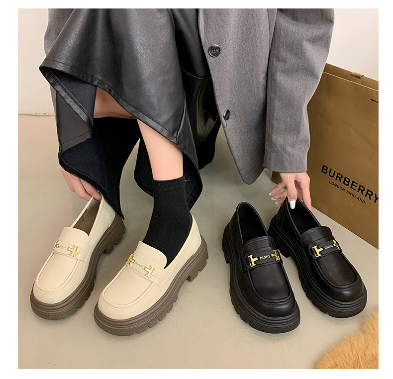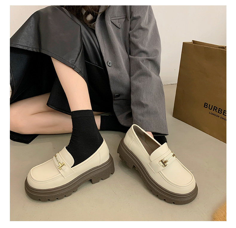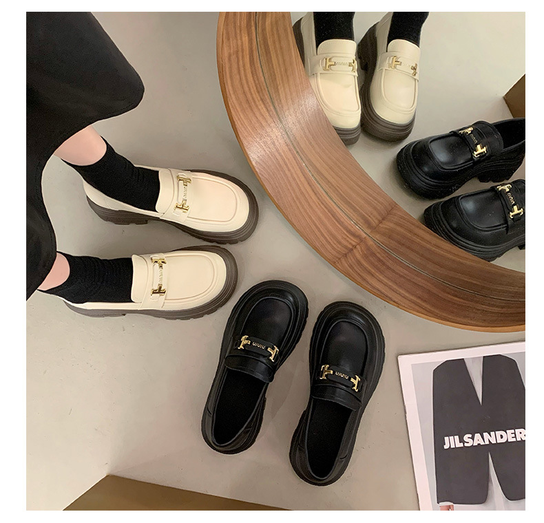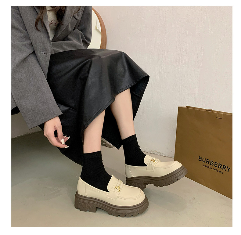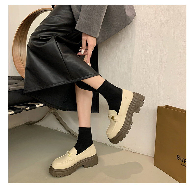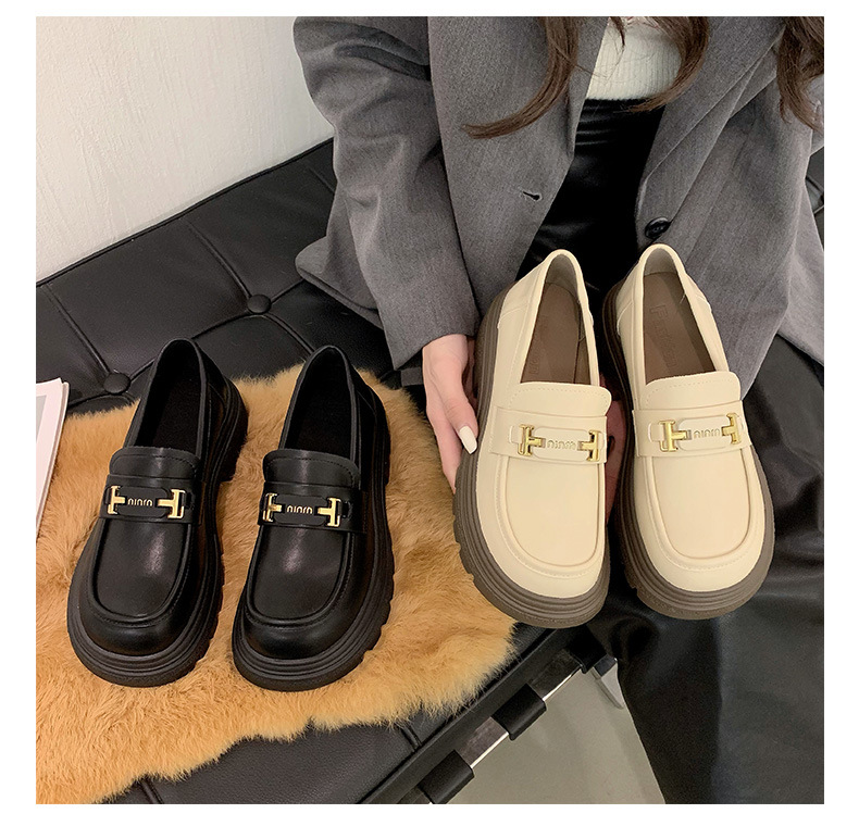 두꺼운 밑창 로퍼 여성 신발 2024 새로운 폭발 봄 여성 신발 머핀 조커 작은 가죽 신발 검은 싱글 레이어 신발스토어 가기