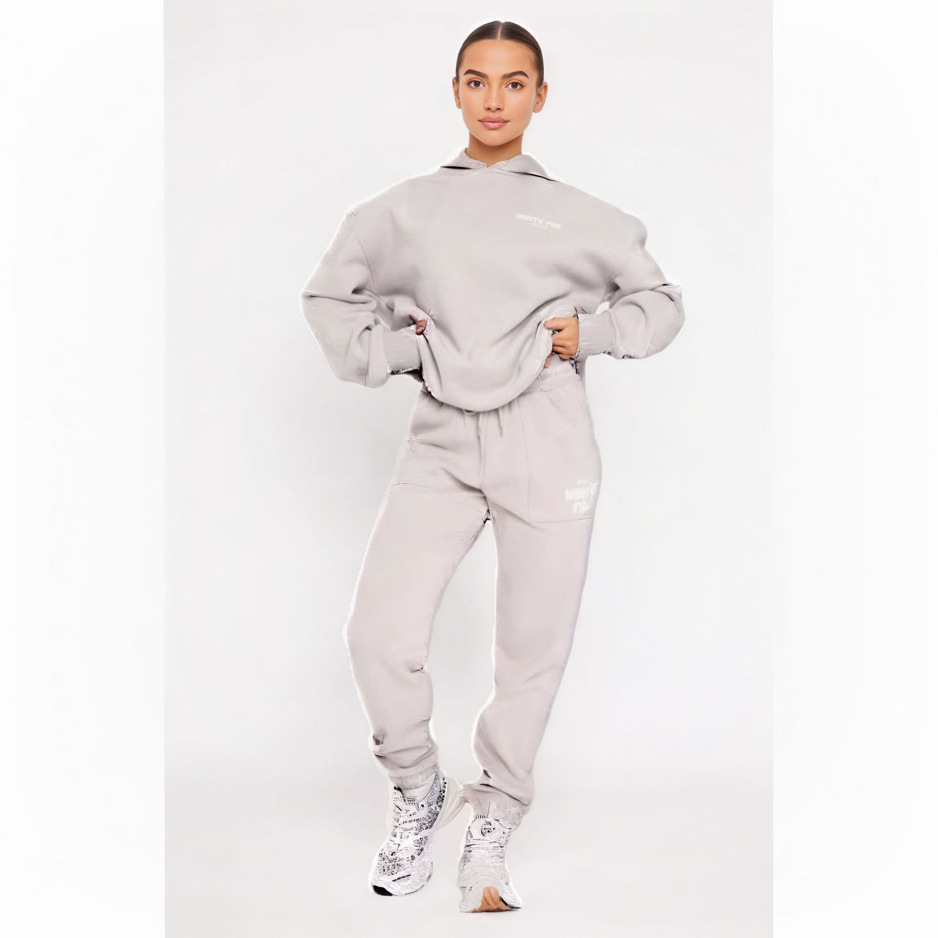 스트리트 후드 스웨터 세트 인쇄 된 폼 패션 힙합 스케이트 보드 캐주얼 여성 기모 스포츠 바지 스포츠