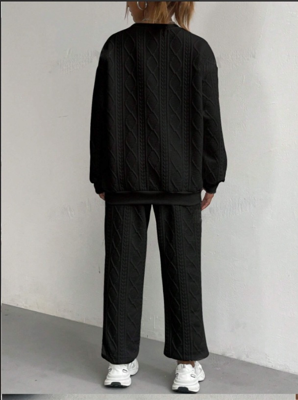 아마존 2024 가을과 겨울 새로운 유럽과 미국의 국경 간 여성 자카드 긴 소매 캐주얼 크루 넥 스웨터 바지 세트