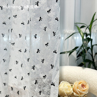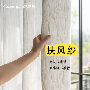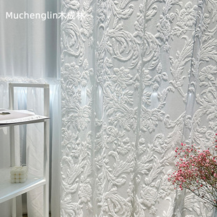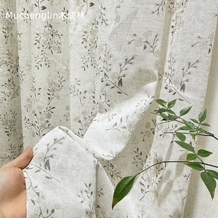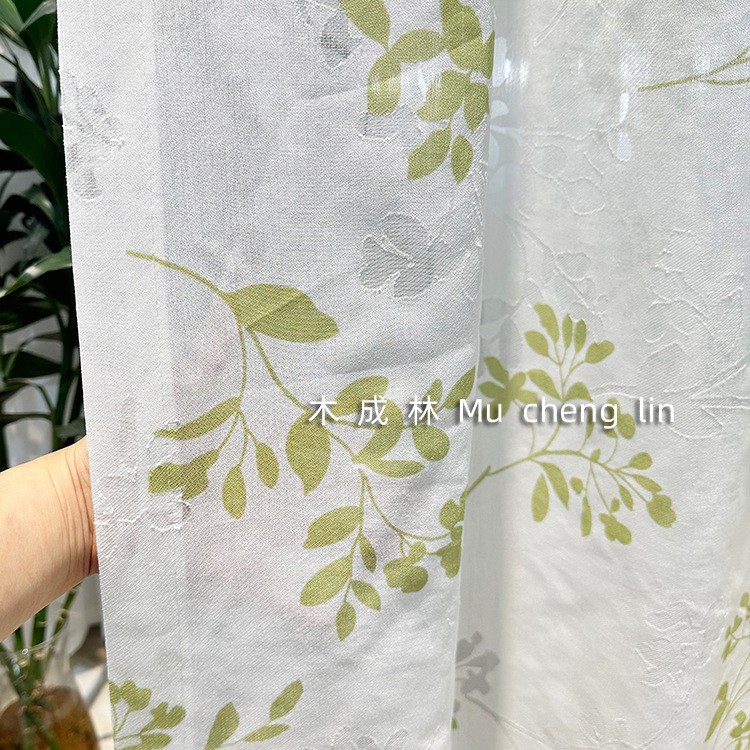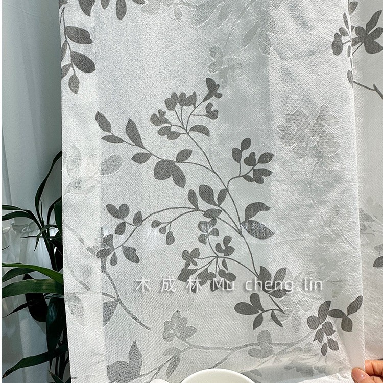 烂花纱帘树叶图案灰色绿色新款外贸美式田园风格百搭窗纱支持散剪