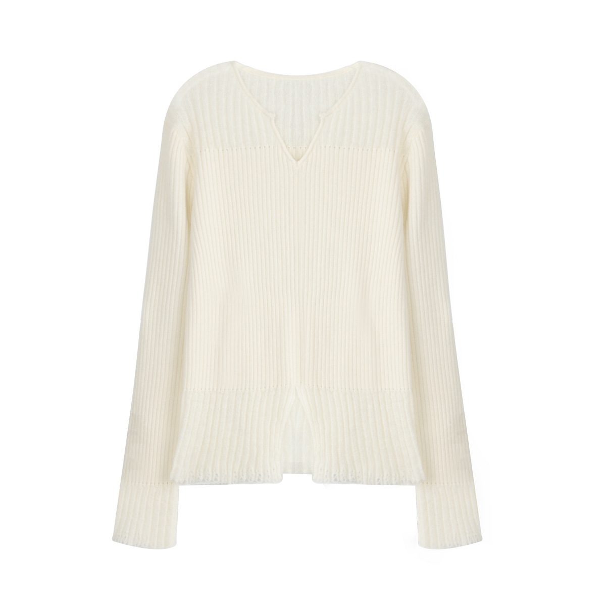 V 领的设计既时尚又优雅,领口薄款版透感设计