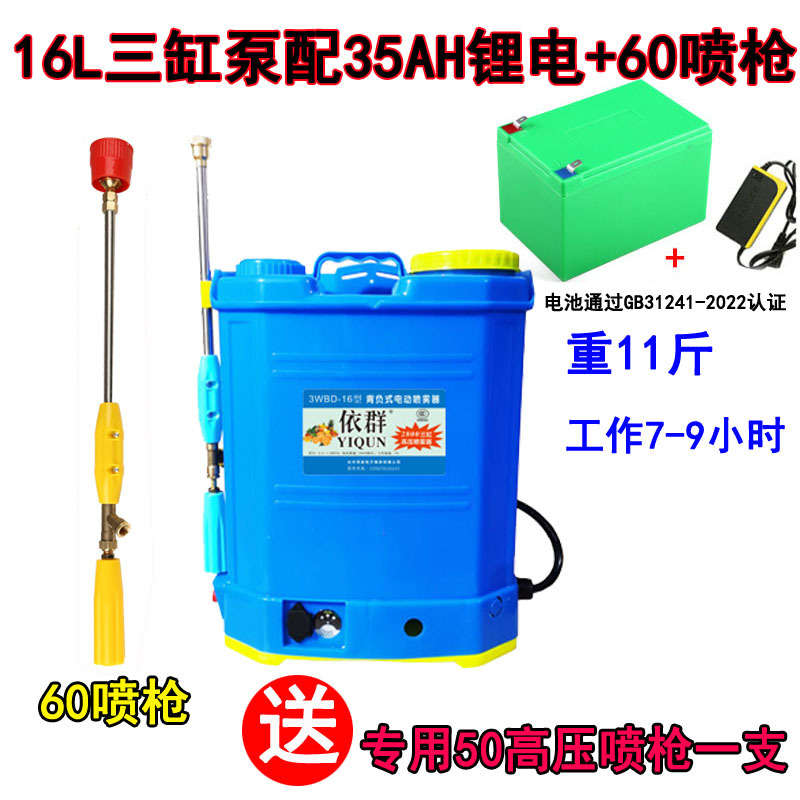 • 35AH 리튬 배터리 + 60 스프레이 건을 갖춘 16L 3기통 분무기