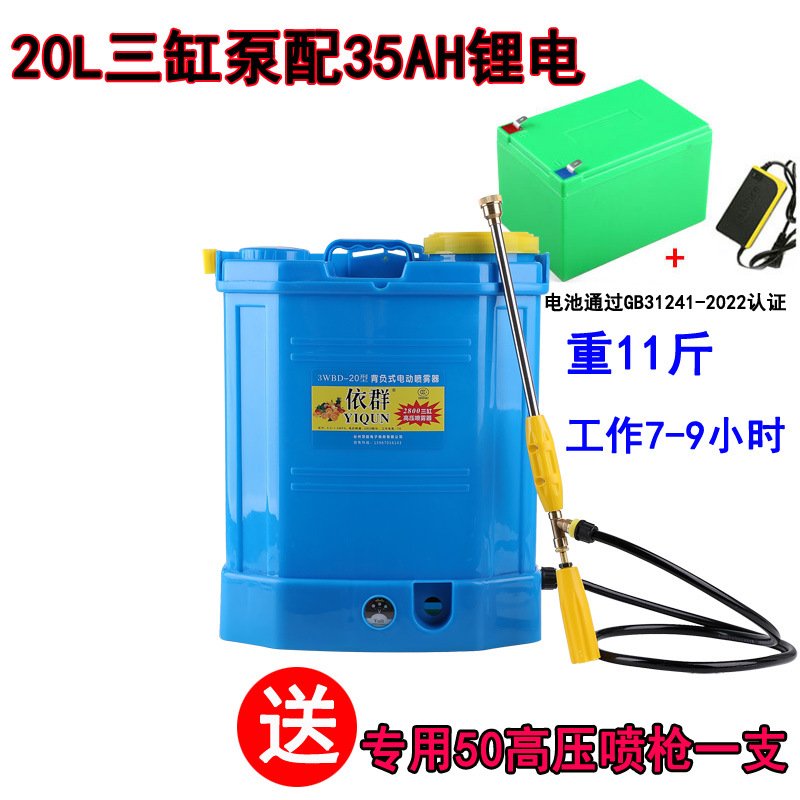 • 35AH 리튬 배터리 + 60 스프레이 건을 갖춘 20L 3기통 분무기