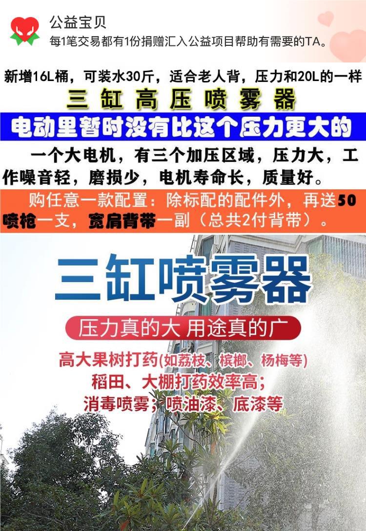 3 기통 펌프 고압 전기 분무기 고출력 농업 과일 나무 살포 기계 소독 및 전염병 예방 분무기 리튬 배터리