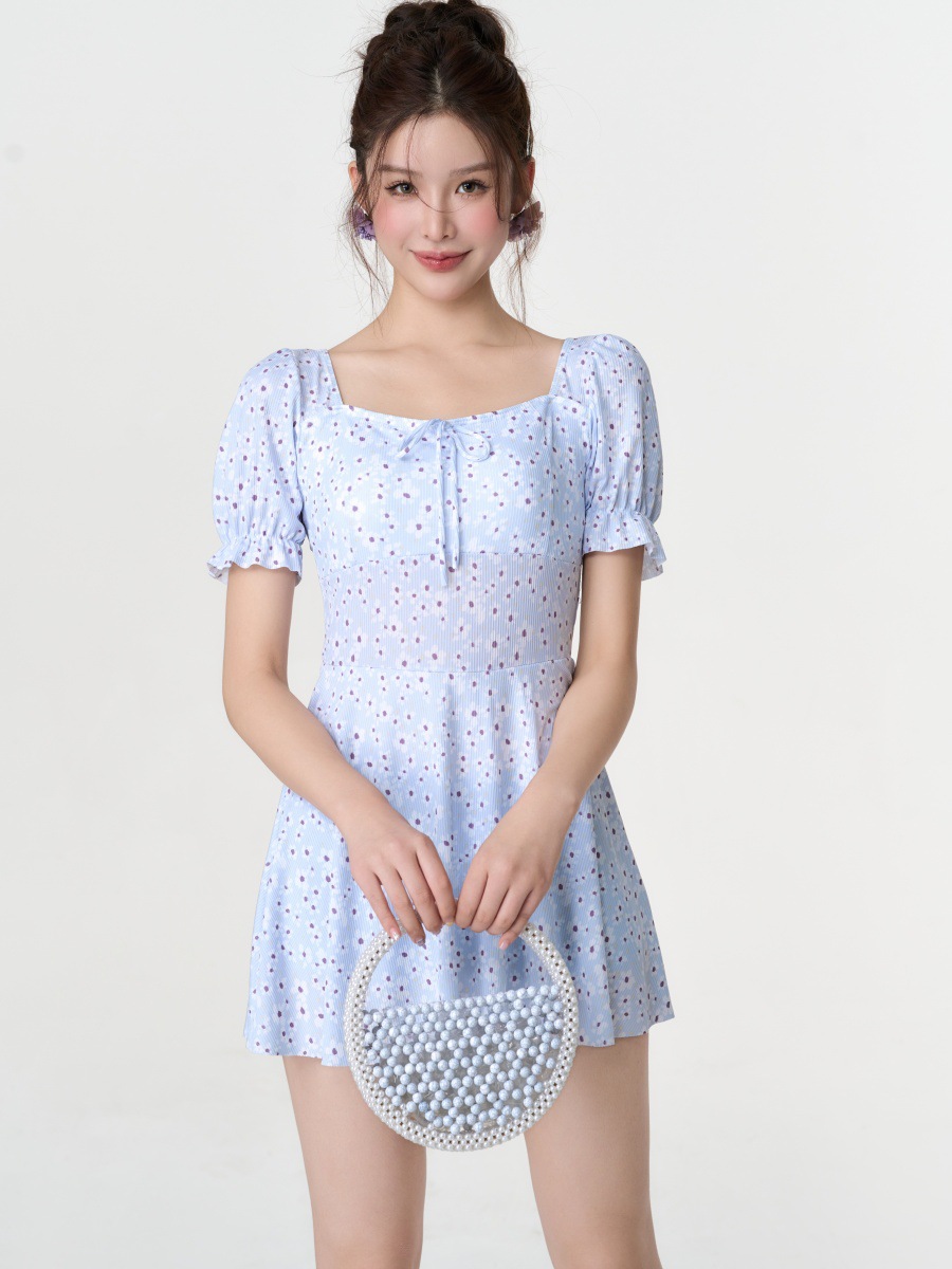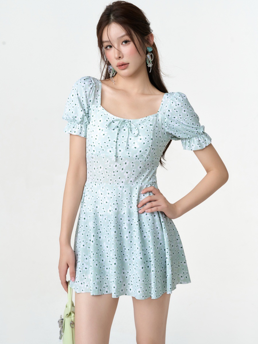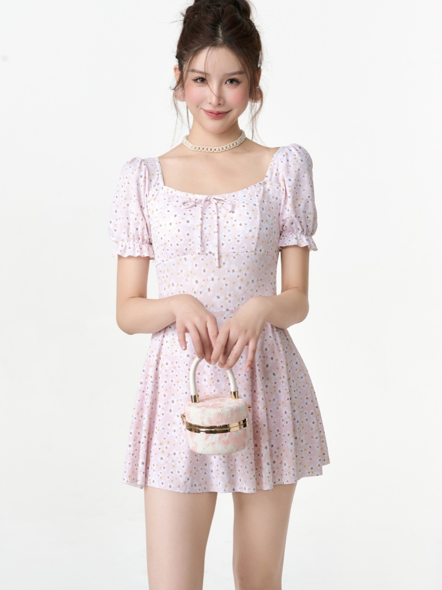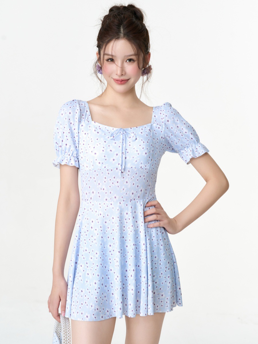 새로운 허리 원피스 수영복 여성 달콤하고 아름다운 스타일 슬림핏 슬리밍 짧은 스커트 수영복 학생 온천 필수 세트