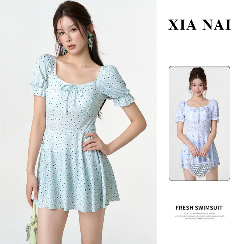 새로운 허리 원피스 수영복 여성 달콤하고 아름다운 스타일 슬림핏 슬리밍 짧은 스커트 수영복 학생 온천 필수 세트스토어 가기