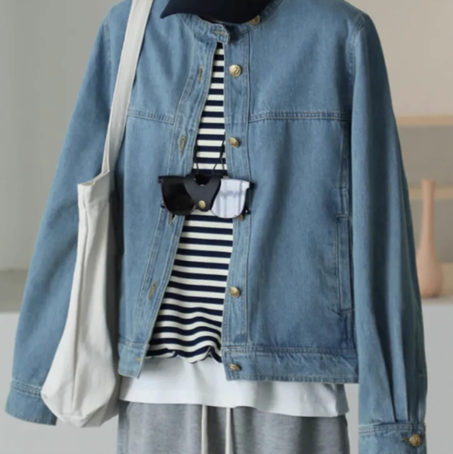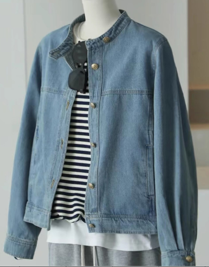 자기 유지 폭발 추천 ~ 홍콩 스타일 레트로 블루 데님 코트 여성의 가을 느슨한 슬림 짧은 재킷 탑스토어 가기