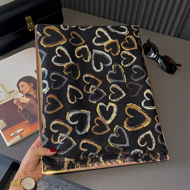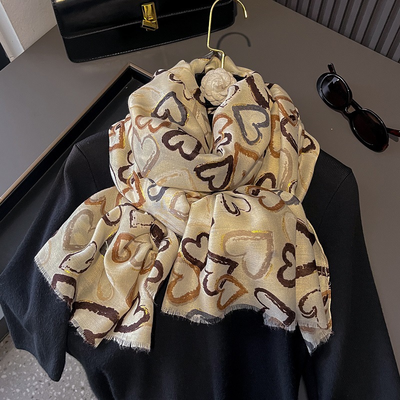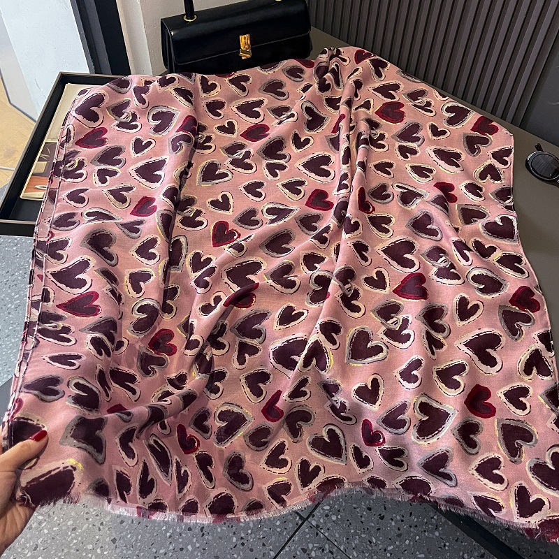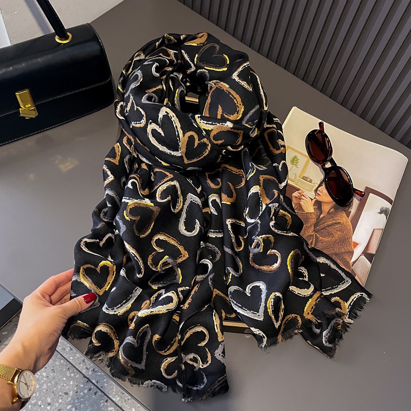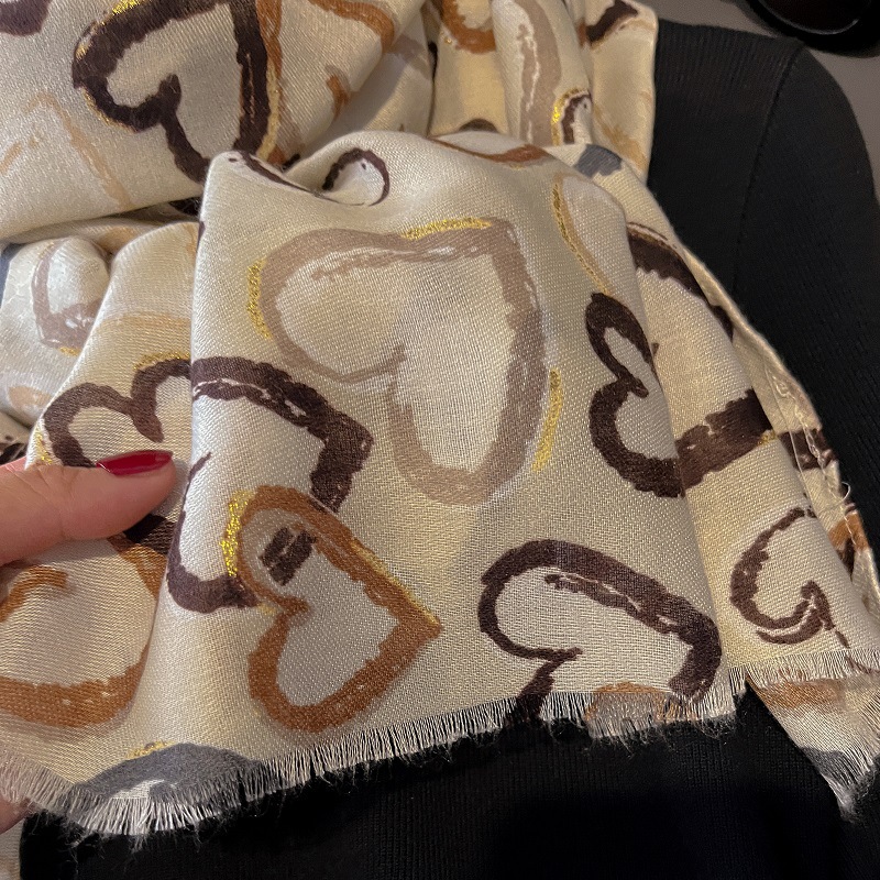 2024 새로운 손 느낌 면화와 리넨 스카프 여성 유화 하이 엔드 느낌 큰 사랑 인쇄 우아한 실크 스카프 목도리 가을과 겨울스토어 가기