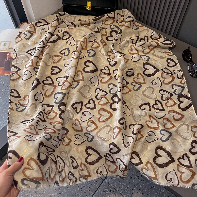 2024 새로운 손 느낌 면화와 리넨 스카프 여성 유화 하이 엔드 느낌 큰 사랑 인쇄 우아한 실크 스카프 목도리 가을과 겨울