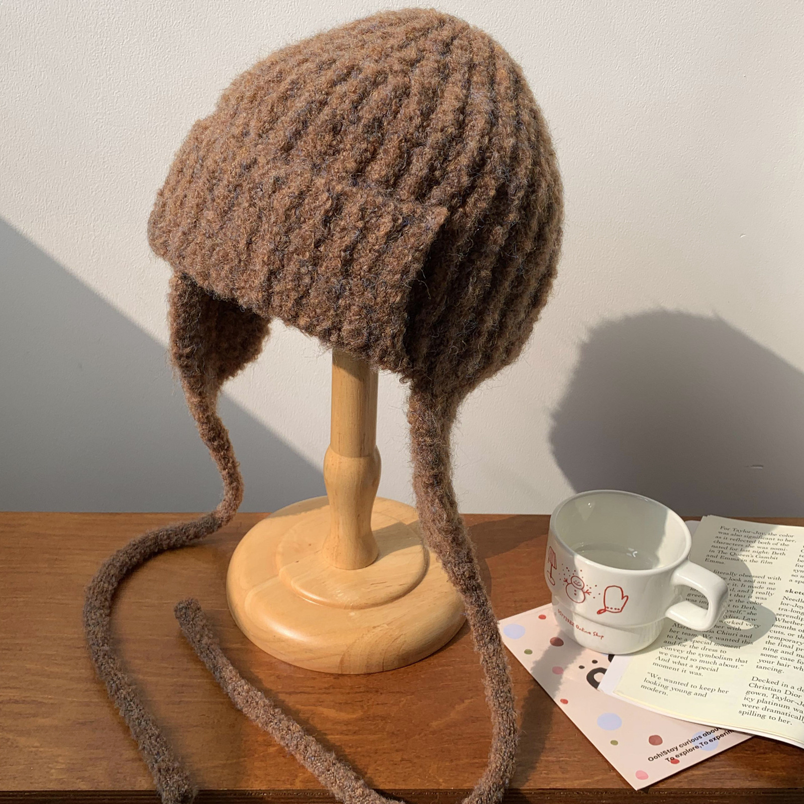 수출 단일 ~ 루프 원사 양모 혼합 니트 모자 여성 가을과 겨울 풀오버 따뜻한 양모 비행 귀 보호 캡