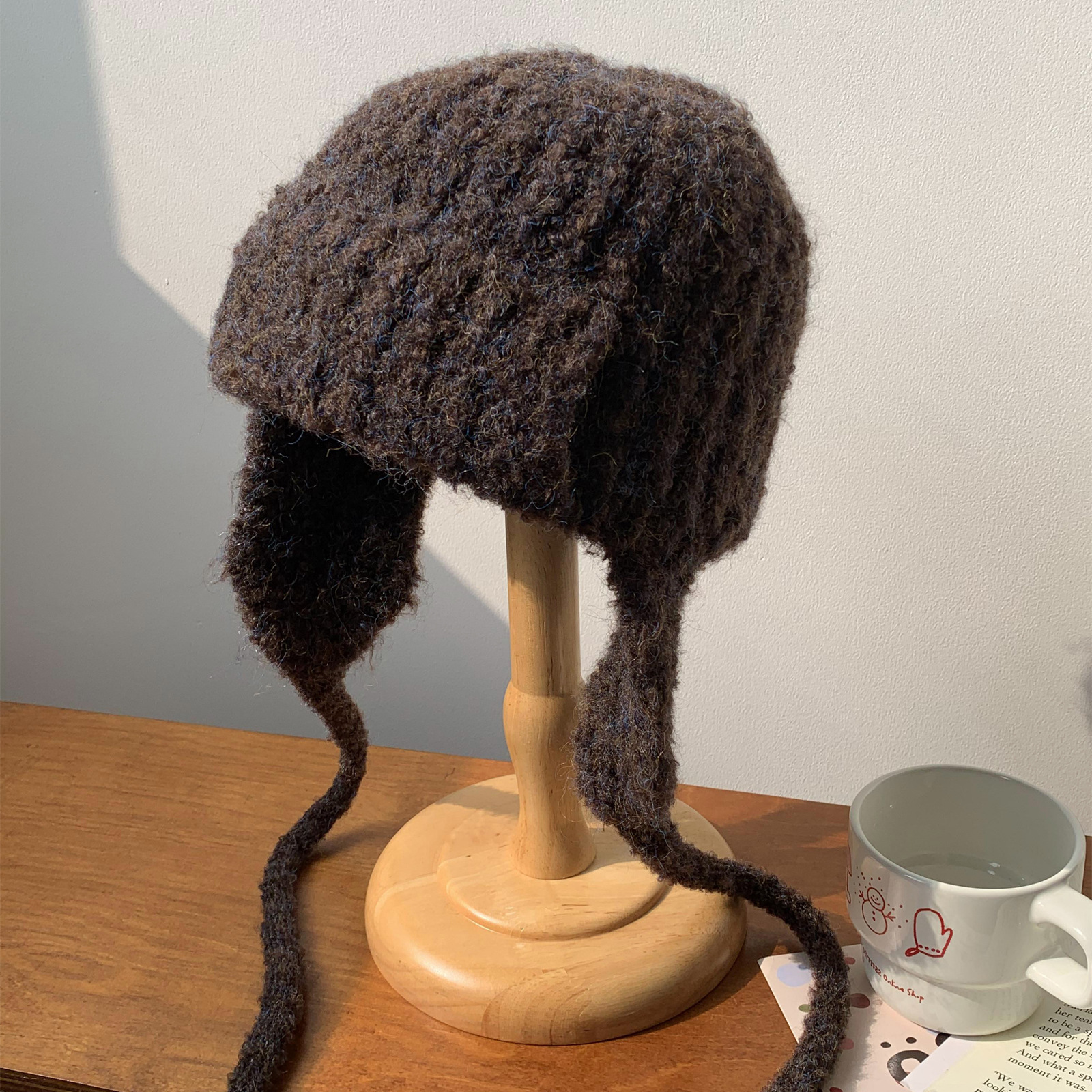 수출 단일 ~ 루프 원사 양모 혼합 니트 모자 여성 가을과 겨울 풀오버 따뜻한 양모 비행 귀 보호 캡스토어 가기