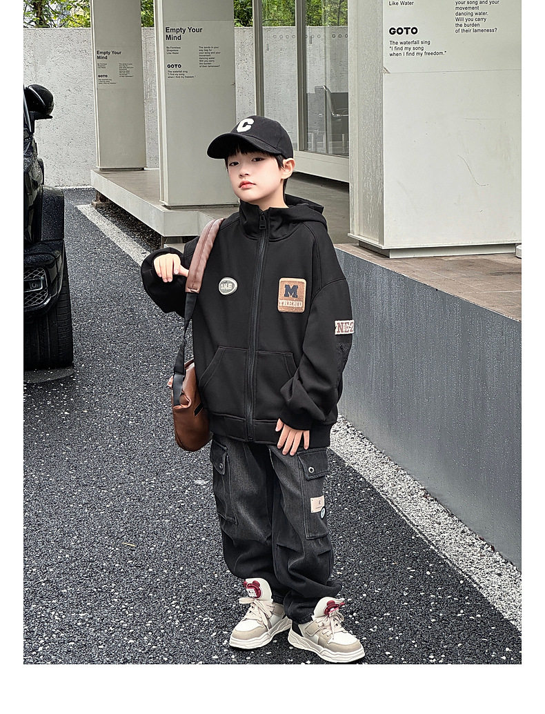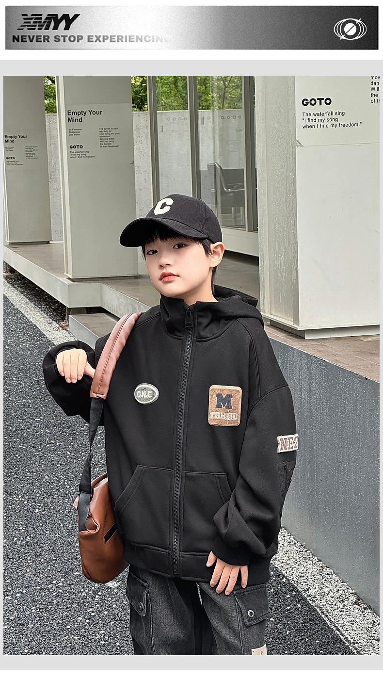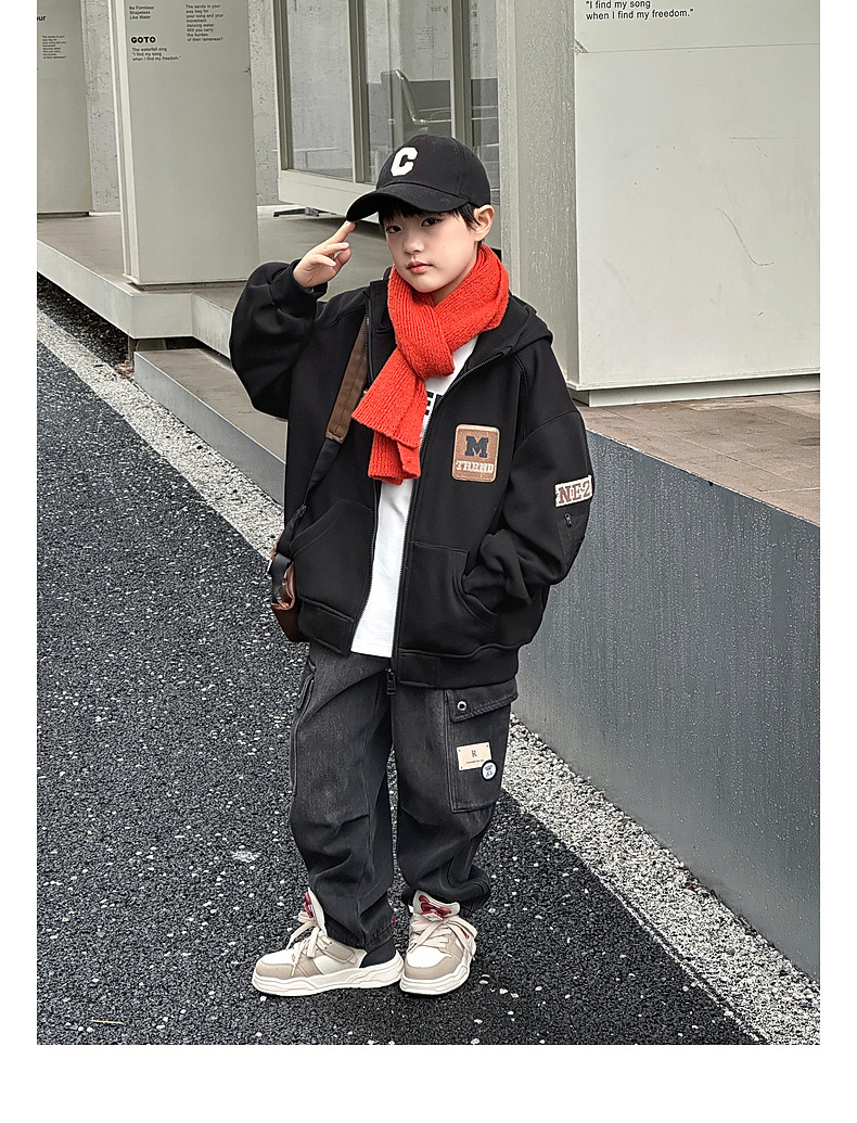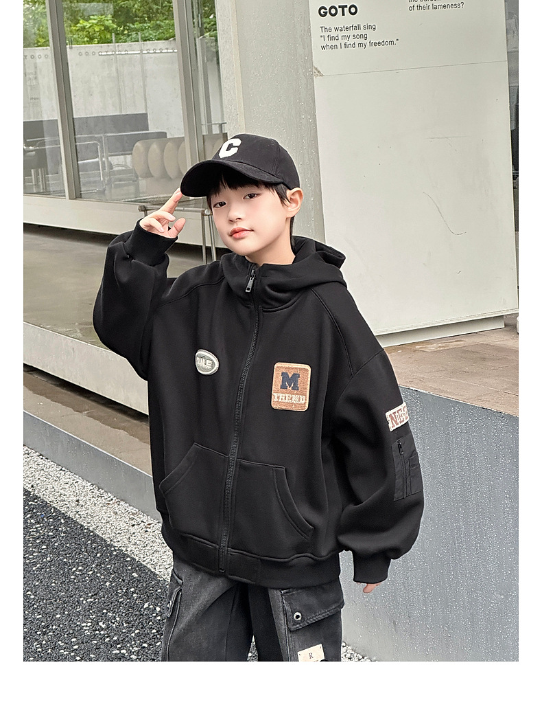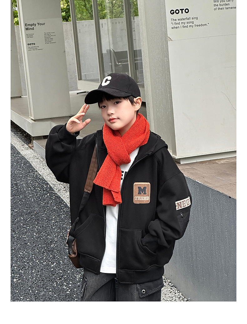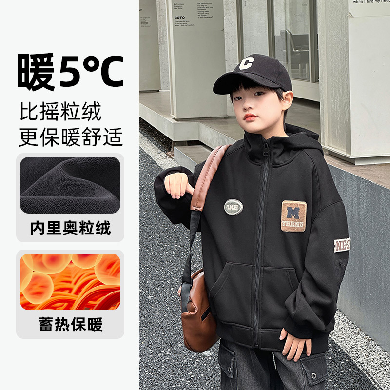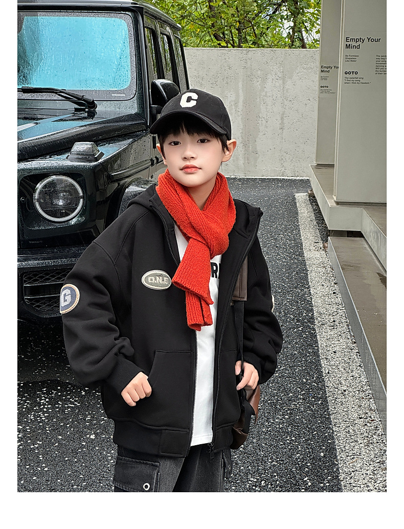 Panda Yuanyuan 2024 가을과 겨울 새로운 어린이 기모 후드 니트 자켓 원피스 벨벳 소년의 따뜻한 재킷