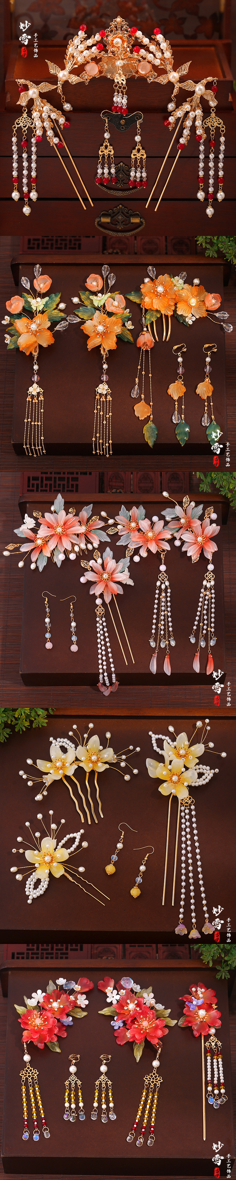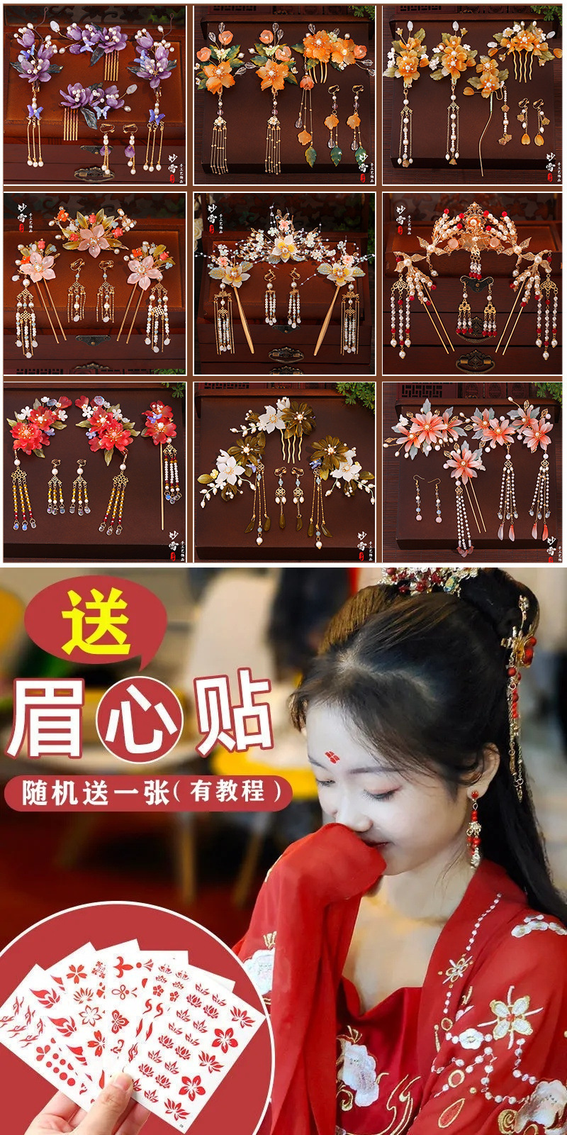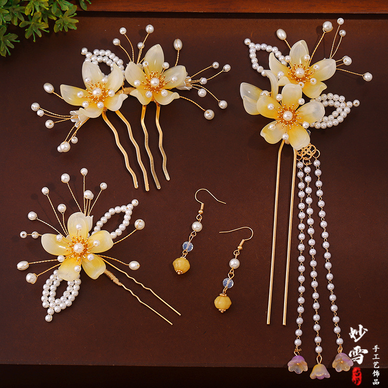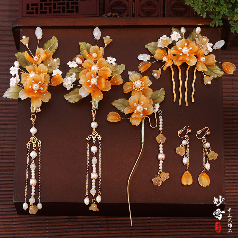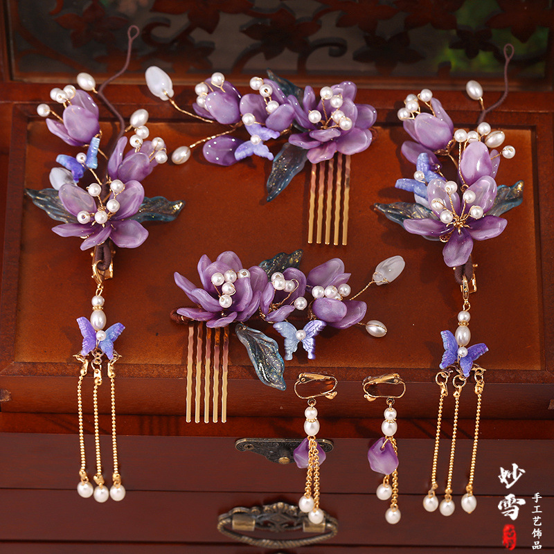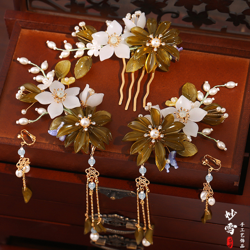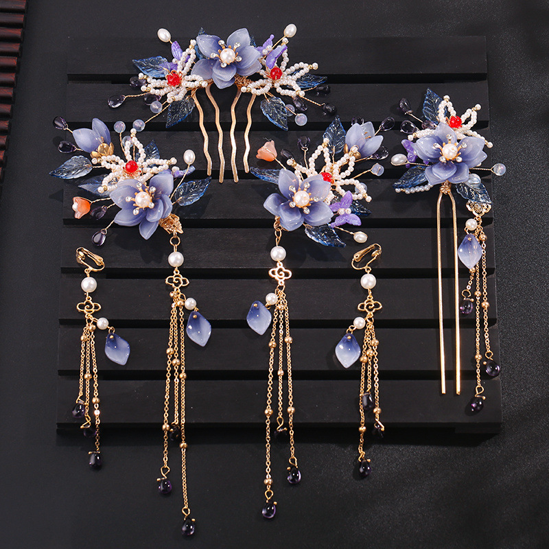 아트 수제 골동품 헤드폰 한후 헤어 액세서리 세트 세트 술 사이드 클립 헤어핀 스텝 새로운 스타일스토어 가기