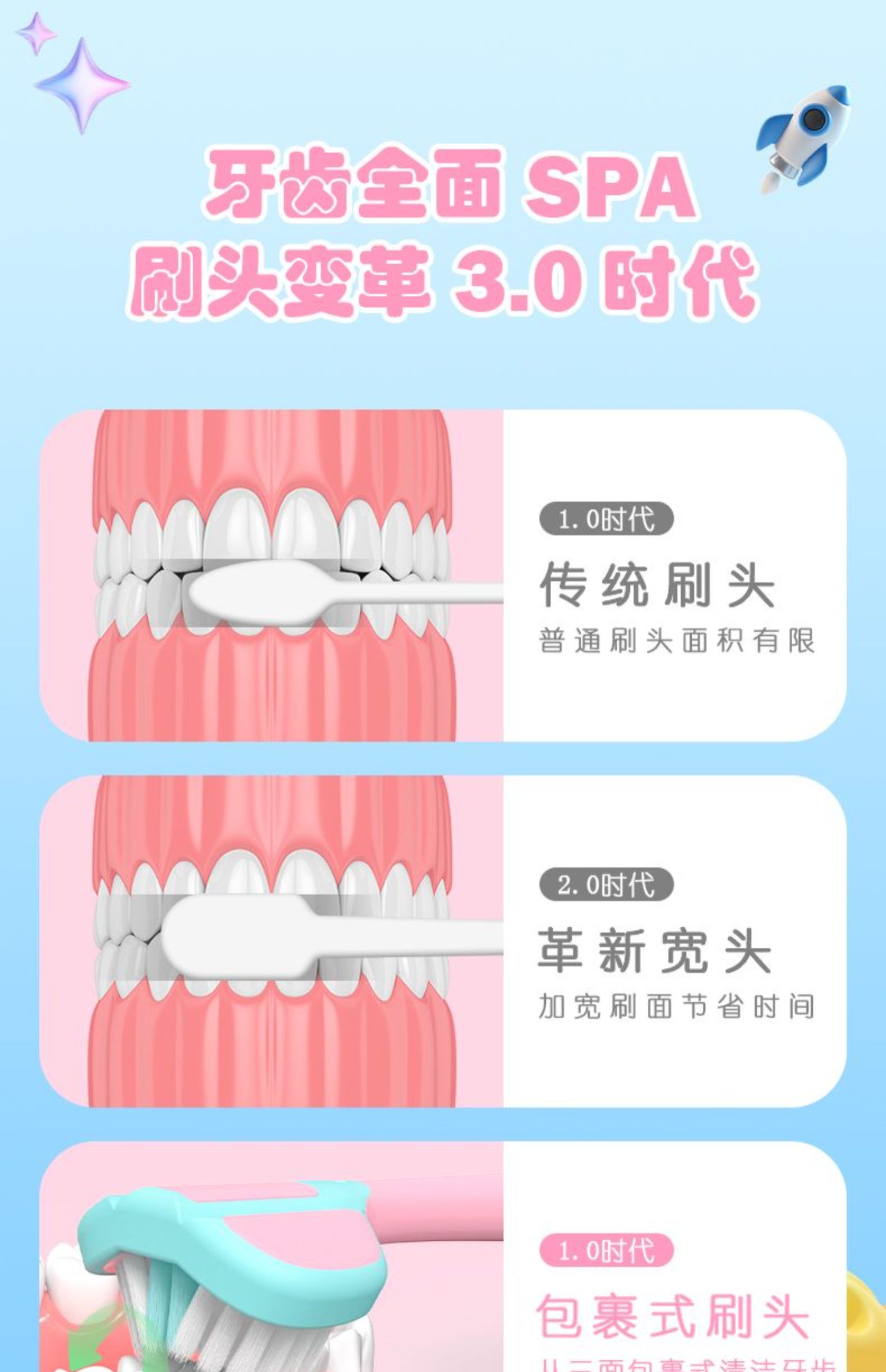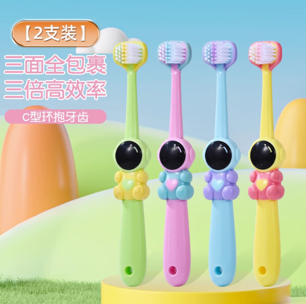 우주 비행사 어린이 3 면 칫솔 부드러운 헤어 가정용 만화 스타일 특수 칫솔 3 ~ 12 세 아기의 치아 변경 기간스토어 가기