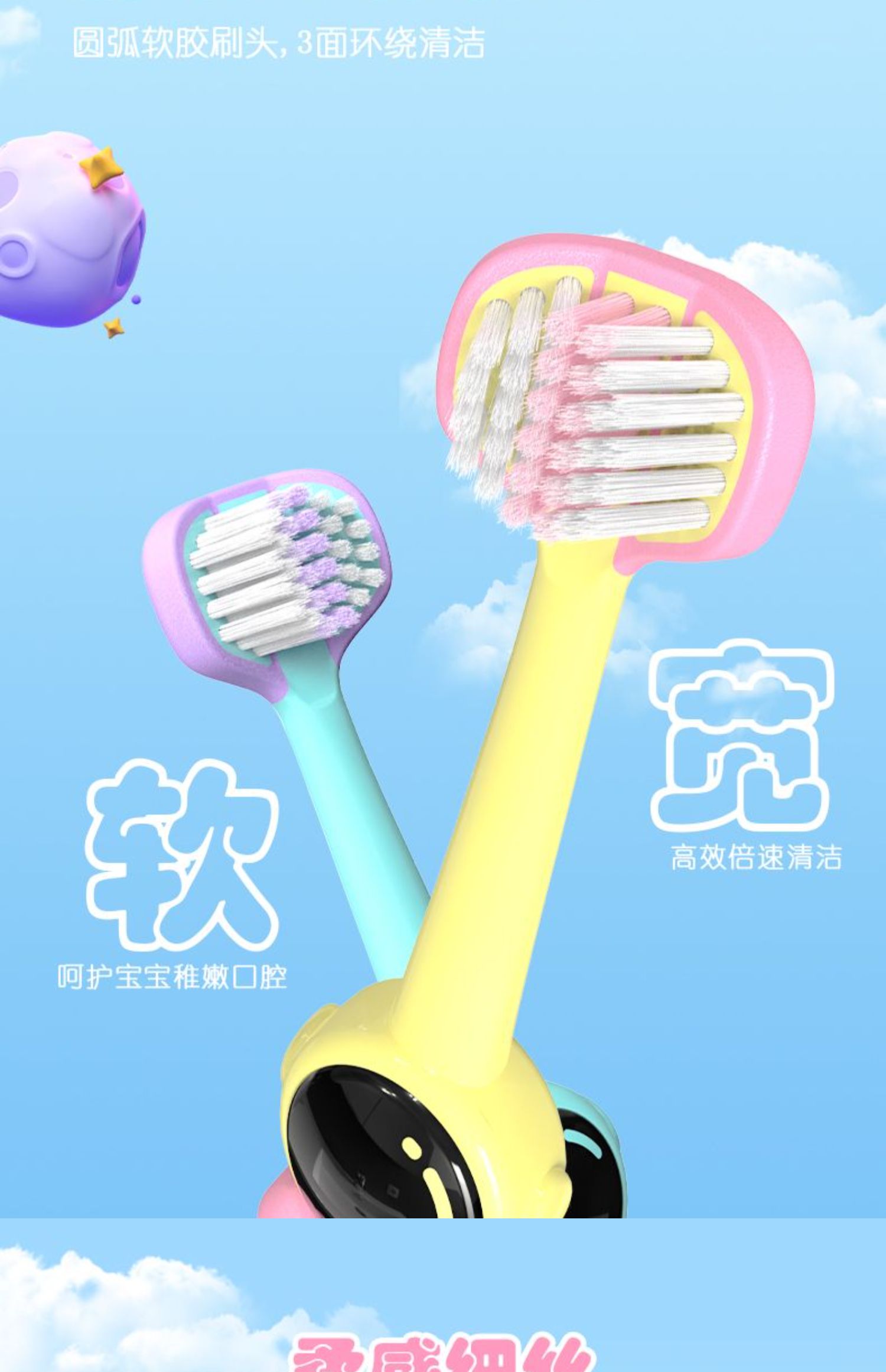 우주 비행사 어린이 3 면 칫솔 부드러운 헤어 가정용 만화 스타일 특수 칫솔 3 ~ 12 세 아기의 치아 변경 기간