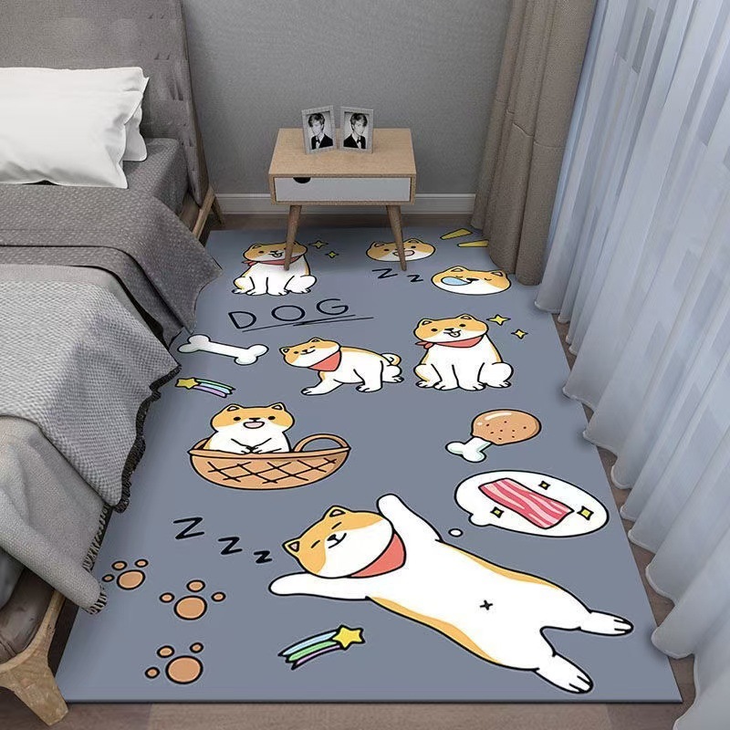 만화 귀여운 침실 카펫 어린이 방 먼지 방지 및 사용하기 쉬운 침대 옆 담요 가정용 물 흡수성 미끄럼 방지 크리스탈 벨벳 카펫스토어 가기