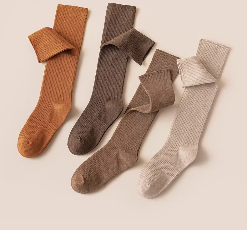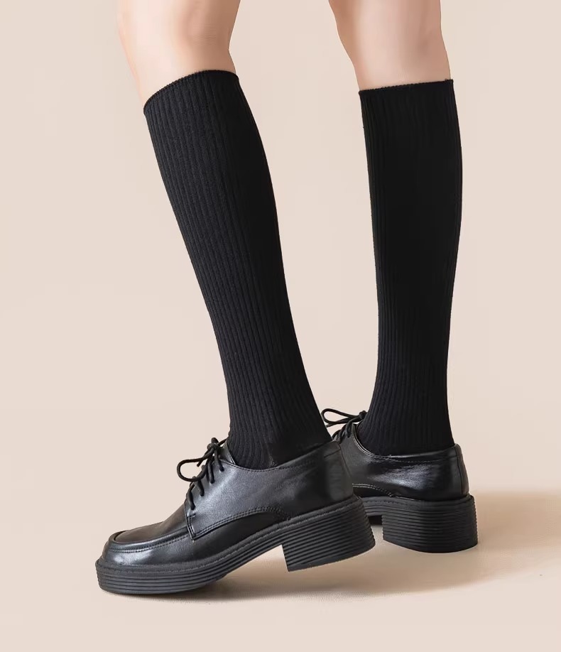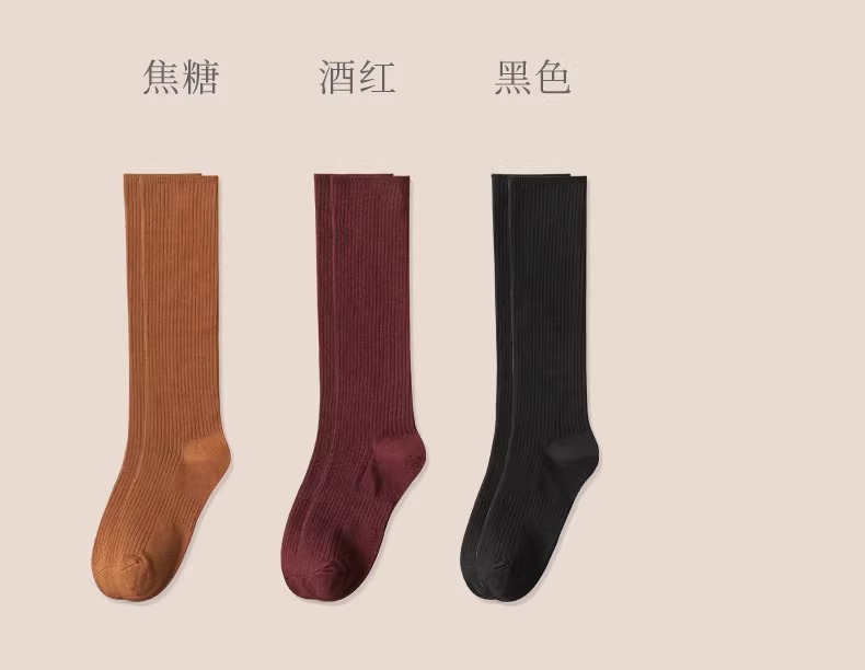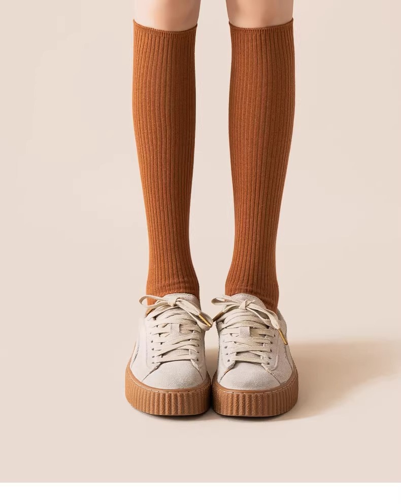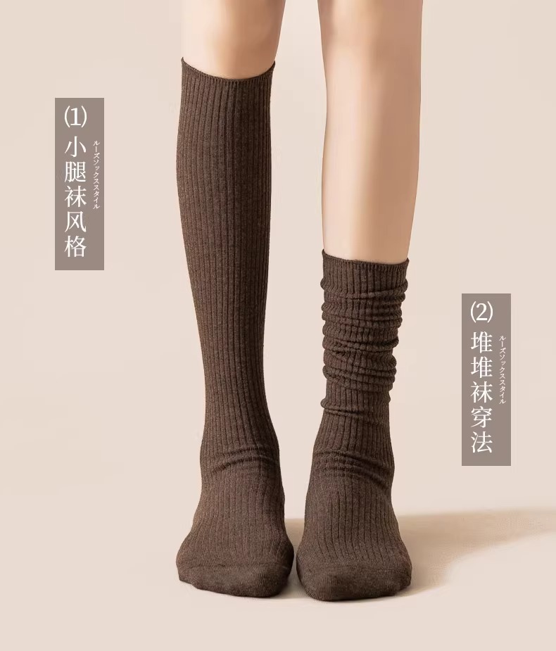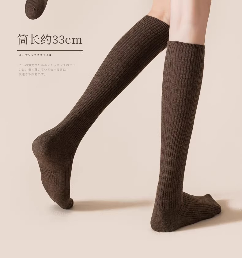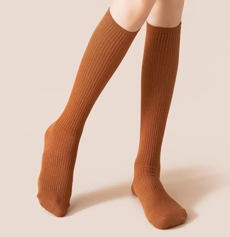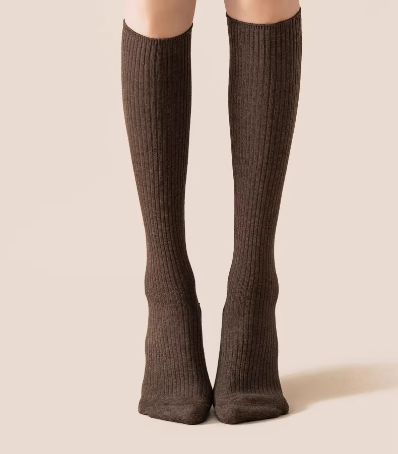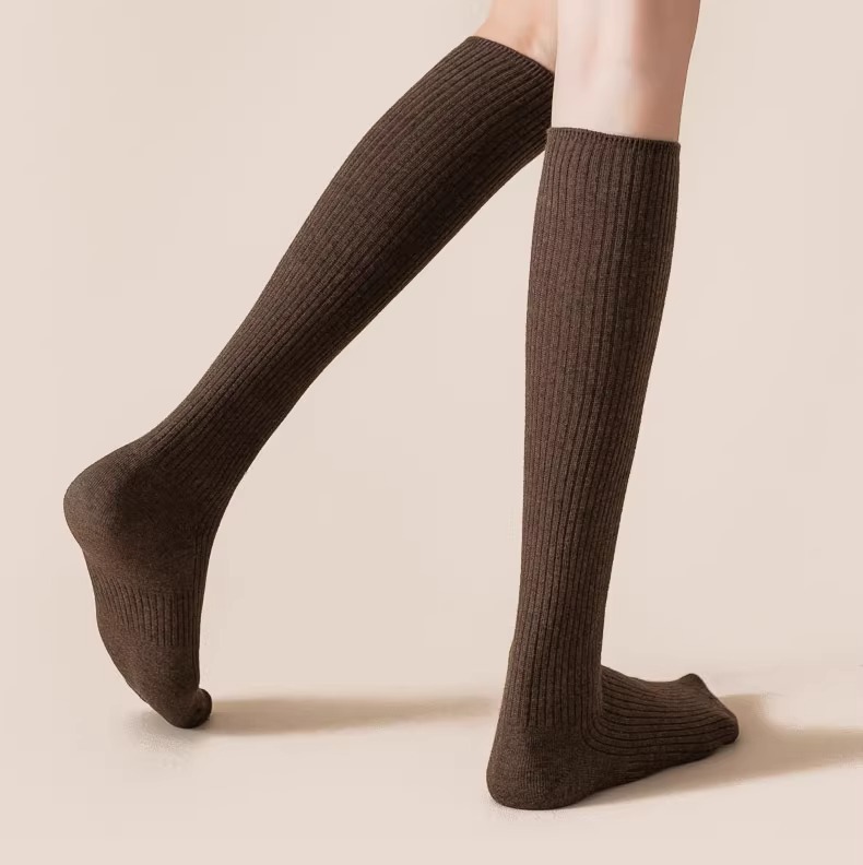 압력 송아지 양말 여성의 가을 및 겨울 면화 양말 얇은 다리 스타킹 JK 겨울 반 무릎 높이 다크 브라운 중간 배럴 높은 스타킹