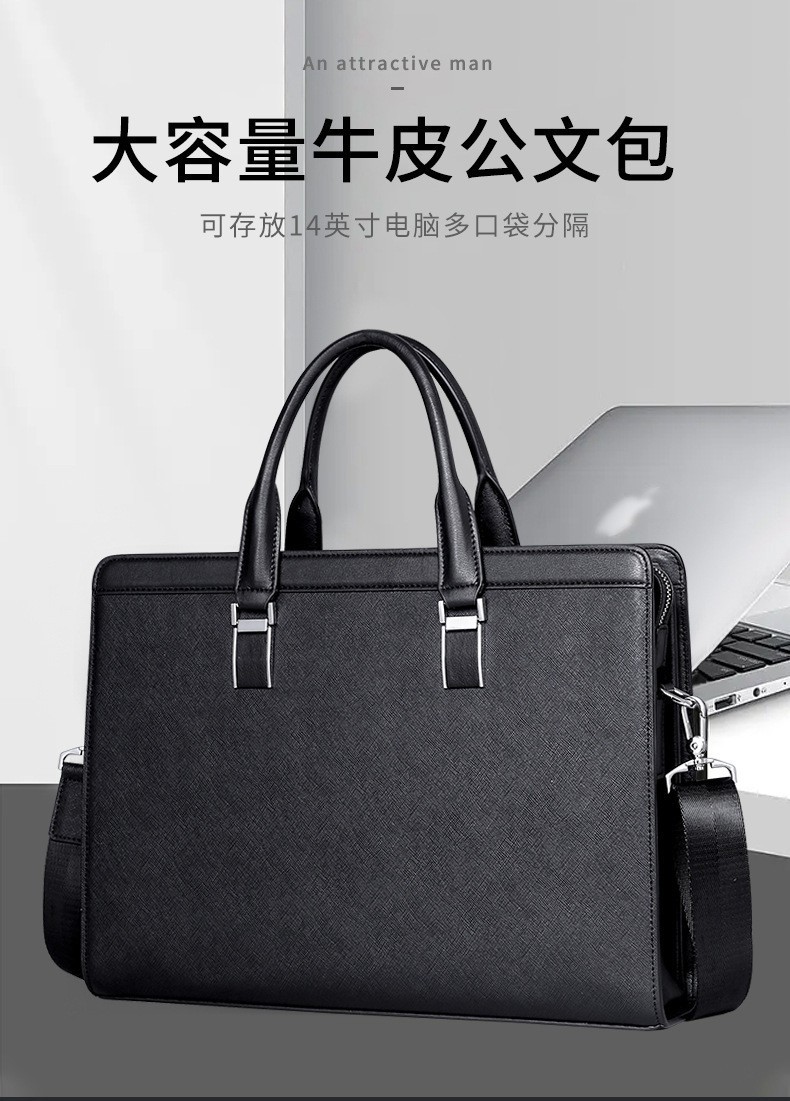 비즈니스 선물 가죽 가죽 남성용 핸드백 소 가죽 컴퓨터 가방 14inch 대용량 어깨 서류 가방 사용자 정의