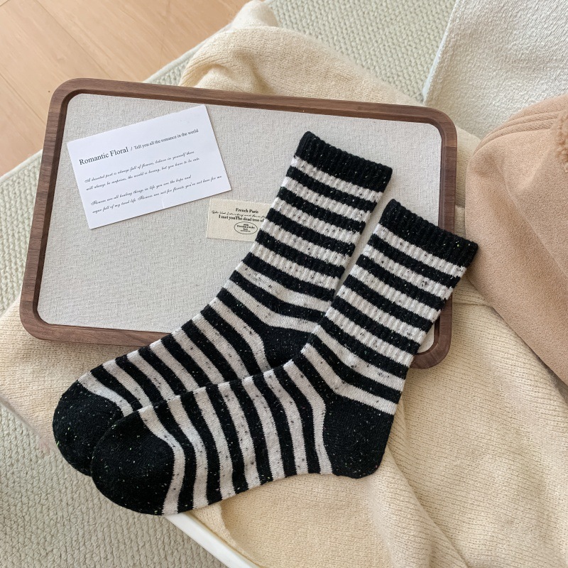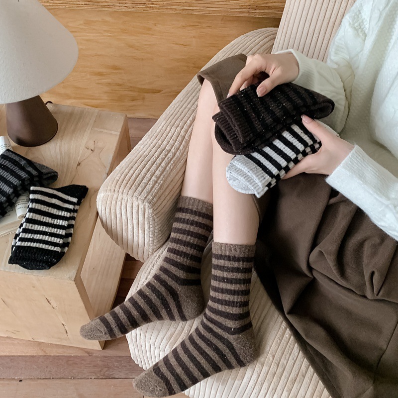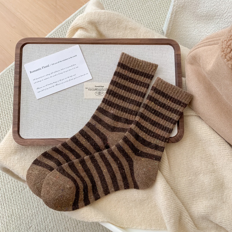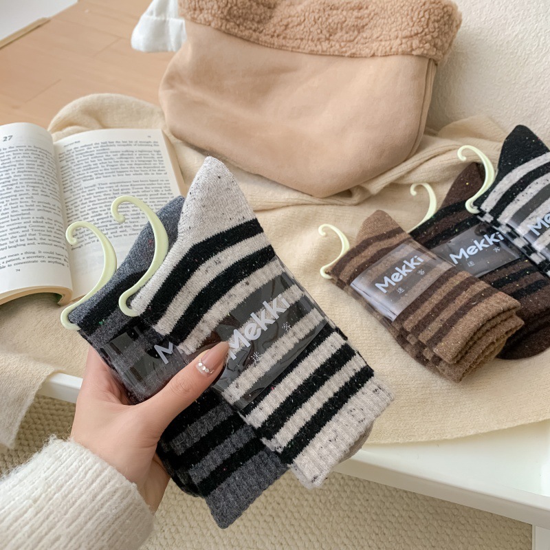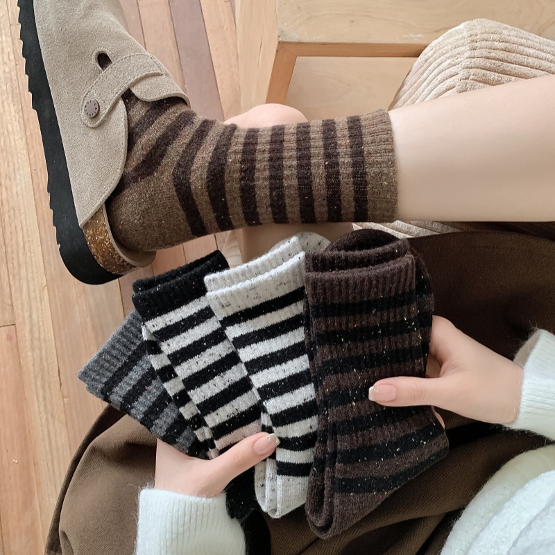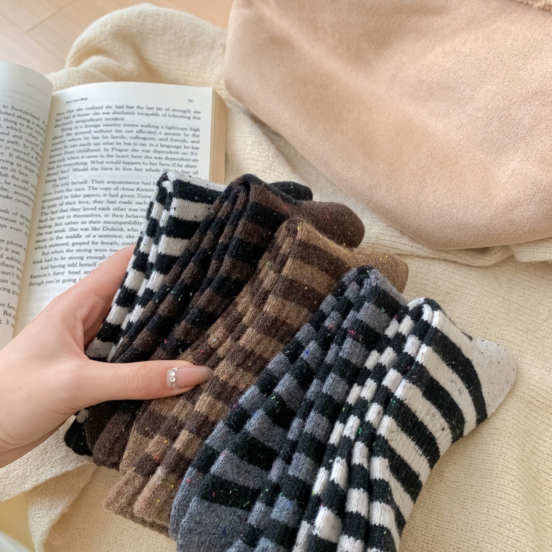 일본식 간단한 스포츠 가을과 겨울 빈티지 줄무늬 도트 원사 여성의 중간 길이의 스타킹 두껍고 따뜻한 한국 스타일 필링 스타킹