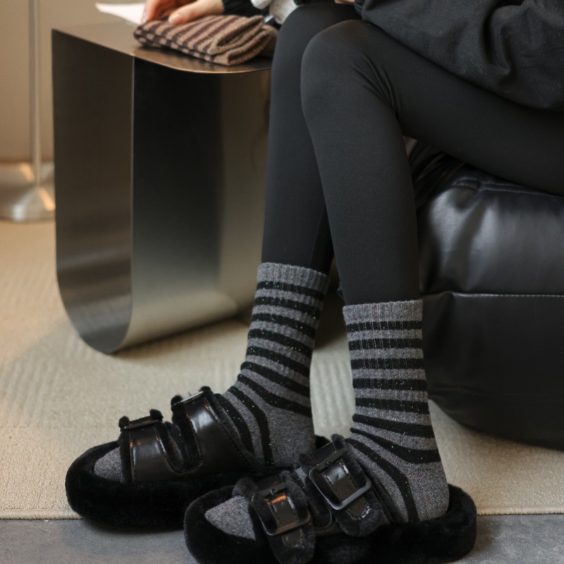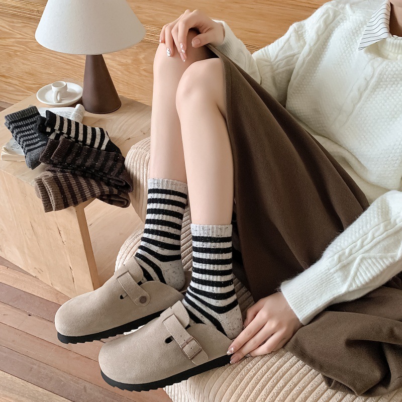일본식 간단한 스포츠 가을과 겨울 빈티지 줄무늬 도트 원사 여성의 중간 길이의 스타킹 두껍고 따뜻한 한국 스타일 필링 스타킹스토어 가기