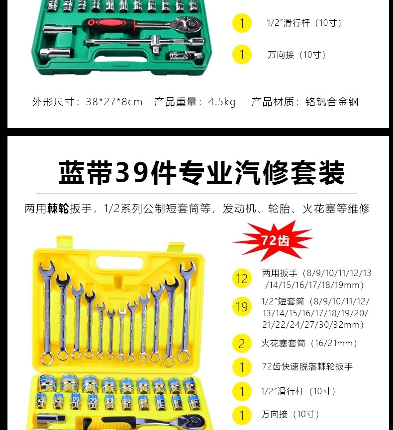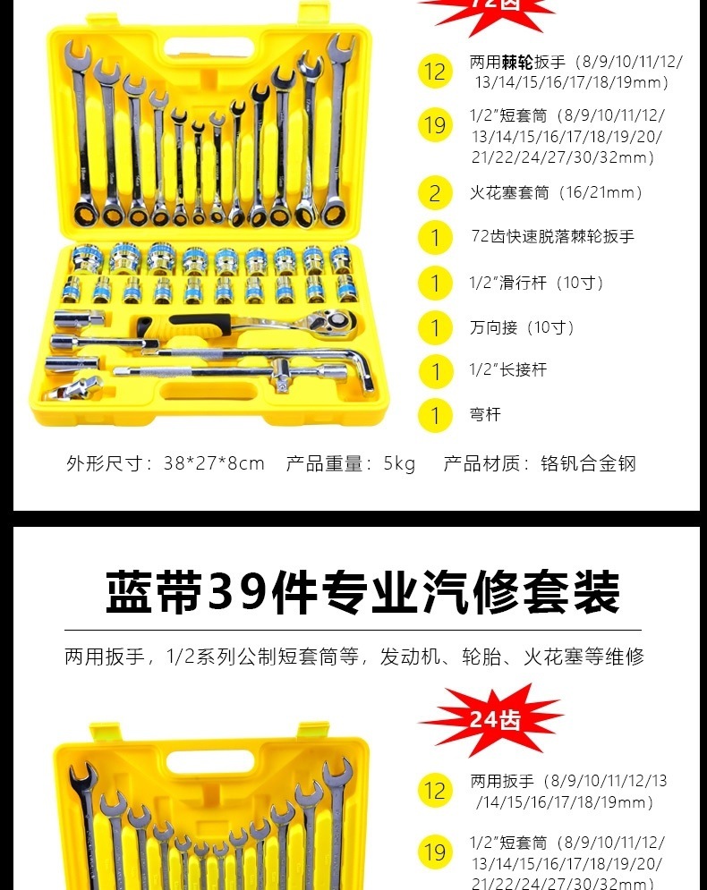 • 39피스 래칫 렌치 세트(72톱니 모델)