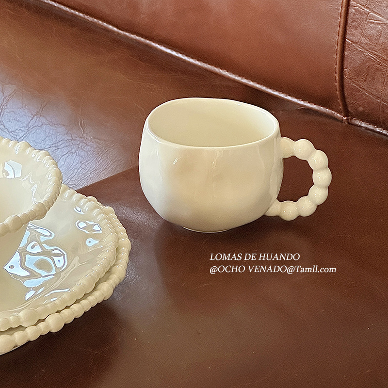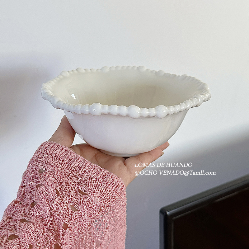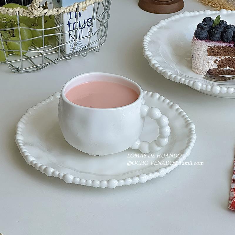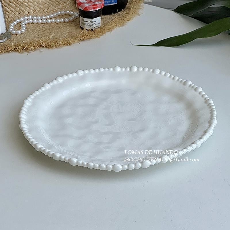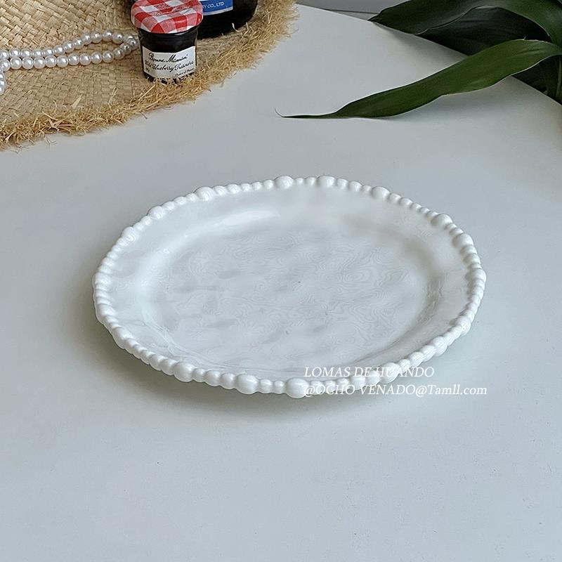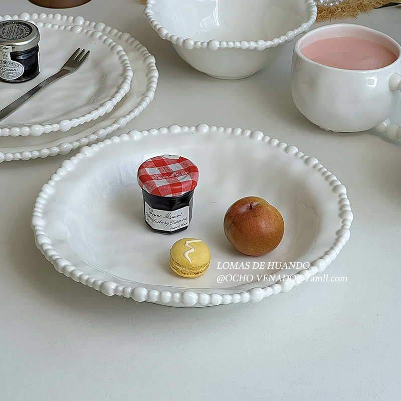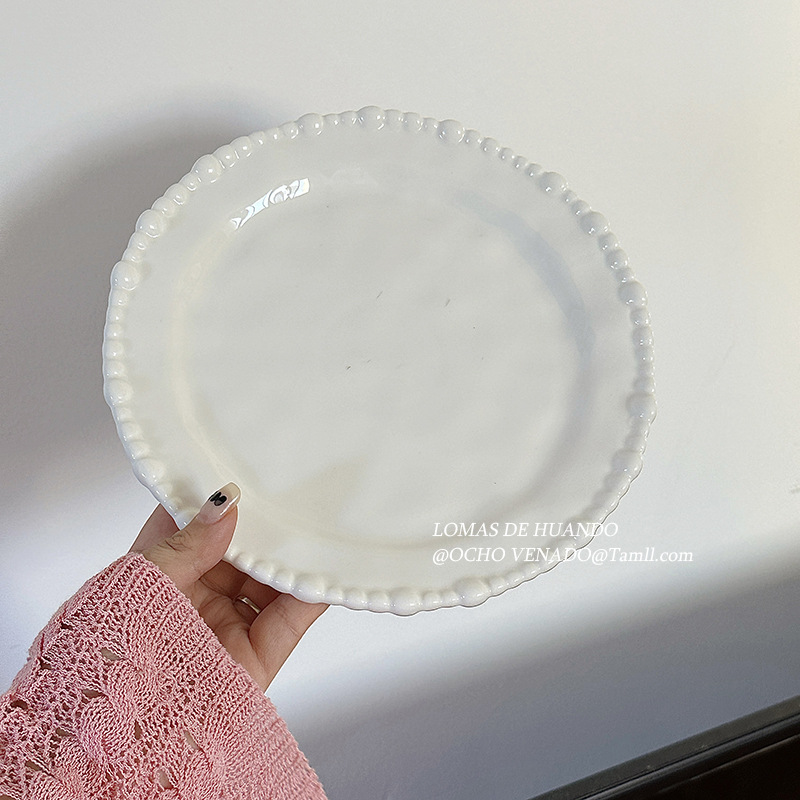프랑스 스타일 간단한 순수한 흰색 진주 사이드 보울과 접시 콤비네이션 높은 색상 가치 서양 음식 그릇 및 디저트 케이크 플레이트 세라믹 Ins 스타일스토어 가기