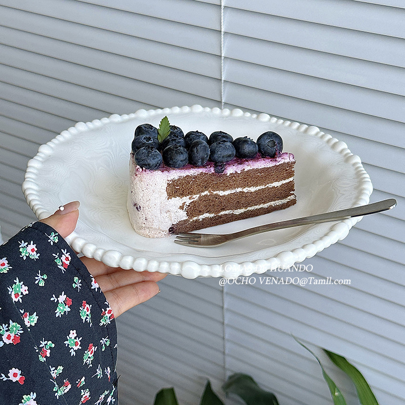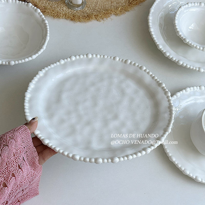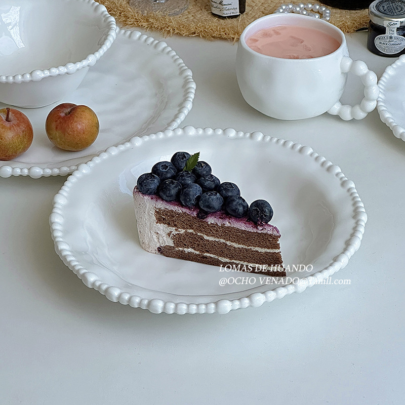 프랑스 스타일 간단한 순수한 흰색 진주 사이드 보울과 접시 콤비네이션 높은 색상 가치 서양 음식 그릇 및 디저트 케이크 플레이트 세라믹 Ins 스타일