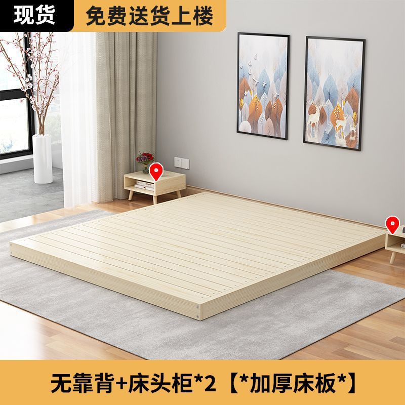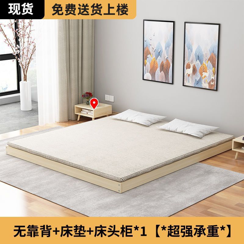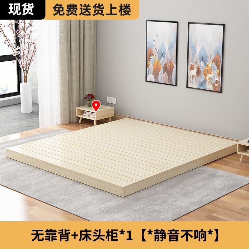 단단한 나무 다타미 현대 간단한 바닥 서 침대 홈스테이 더블 침대 두꺼운 침실 해골 일본식 낮은 침대 침대스토어 가기