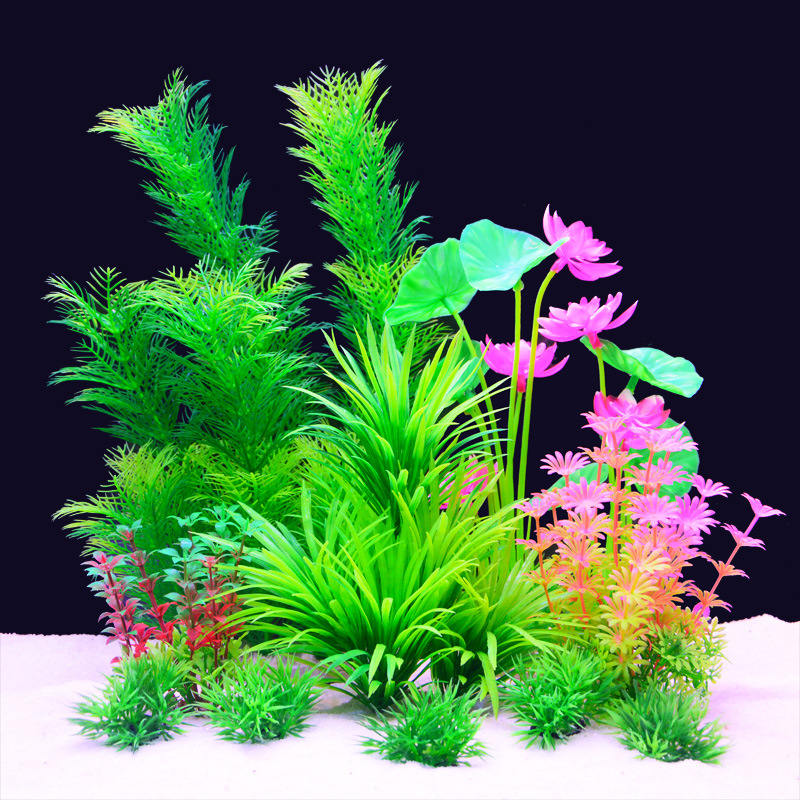 도매 시뮬레이션 수생 식물 물고기 탱크 조경 플라스틱 가짜 수생 식물 세트 장식품 수족관 장식 수생 식물 시뮬레이션