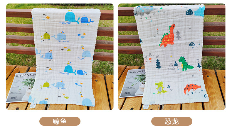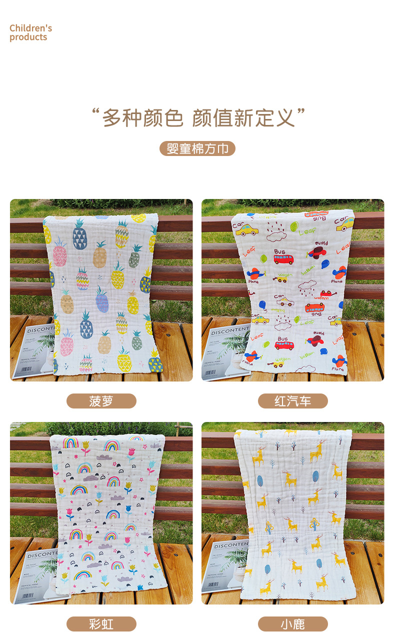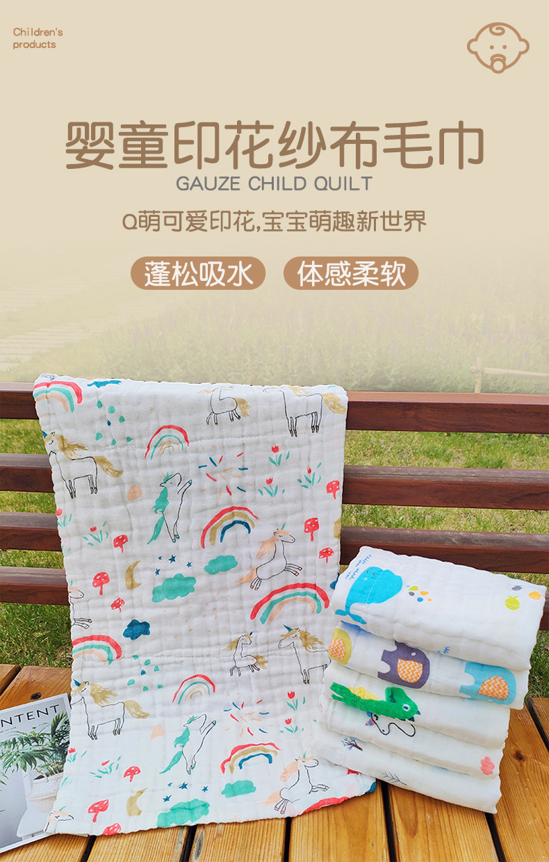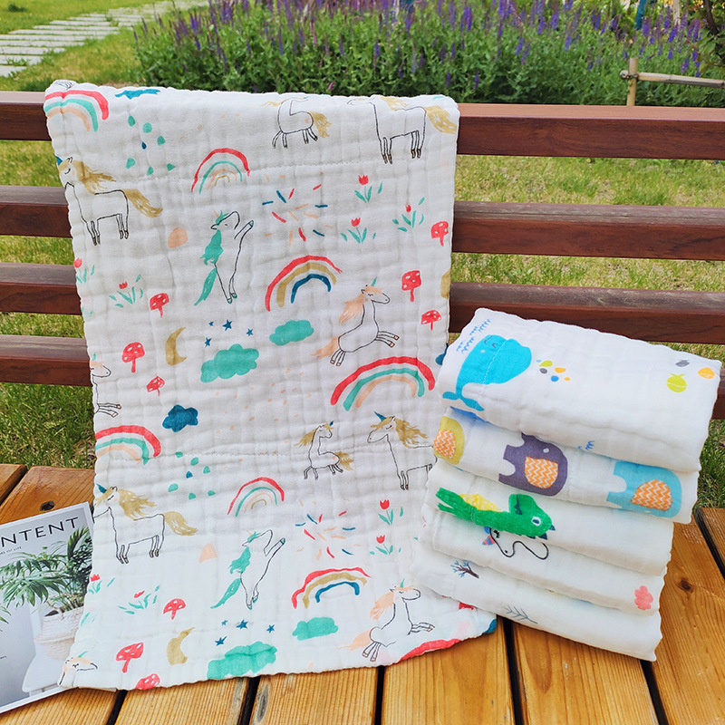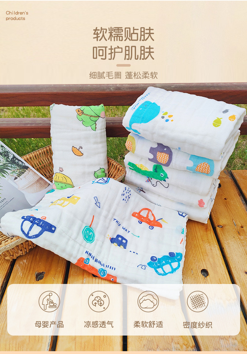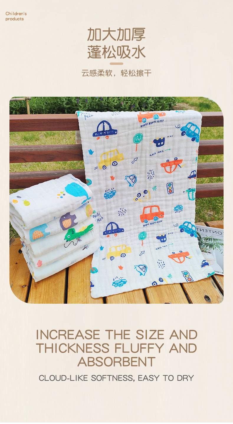 아기 수건 도매 거즈 흡수성 통기성 아기 얼굴 수건 35x75 두꺼운 만화 인쇄 아기 수건스토어 가기