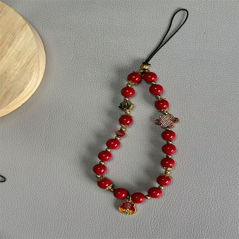 중국 매듭 레드 구슬 끈 체인 수제 구슬 인 스타일 여성의 휴대용 손목 걸이 장식 케이스 유니버설 짧은 패션