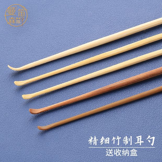 전문 기술자 껍질 귀 대나무 귀 숟가락 도구 세트 작은 미세 머리 석탄 대나무 나무 손잡이 껍질 귀 파는 귀지 조합 Jie Qi스토어 가기