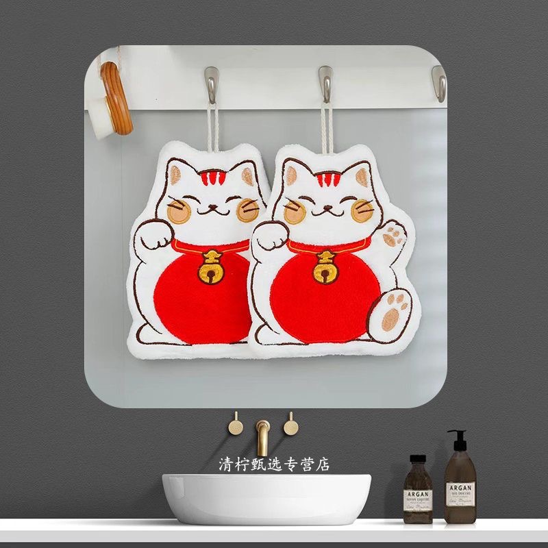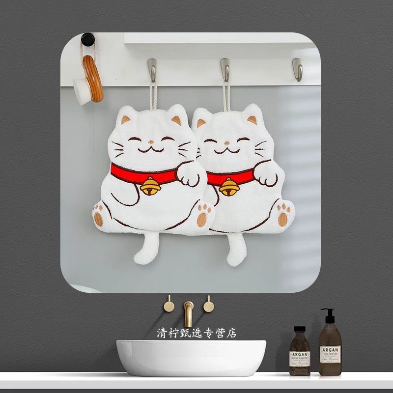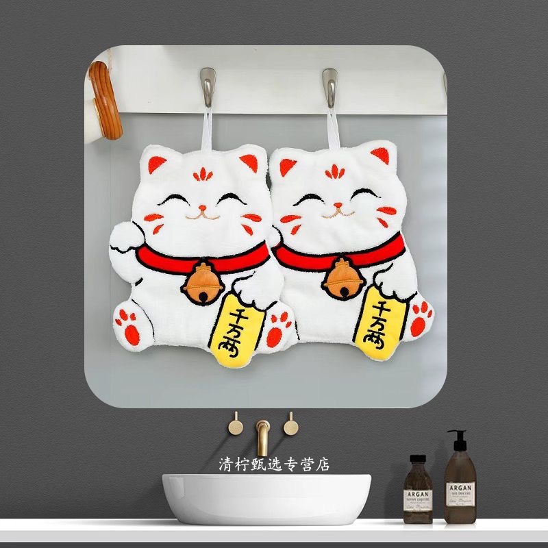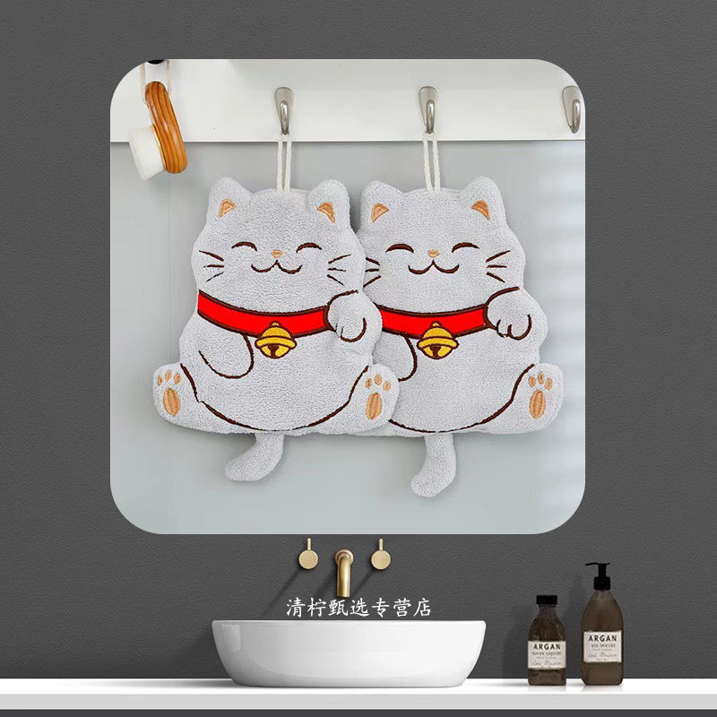 루시드 고양이 벽걸이 편리한 핸드 타월 귀여운 어린이 화장실 및 주방 이중 사용 만화 타월스토어 가기