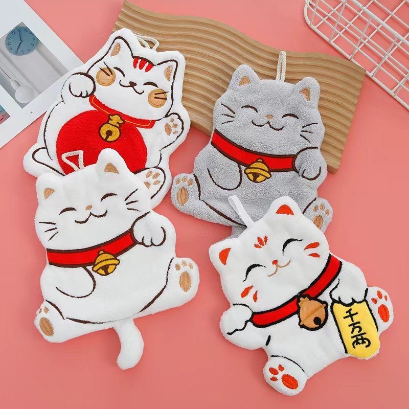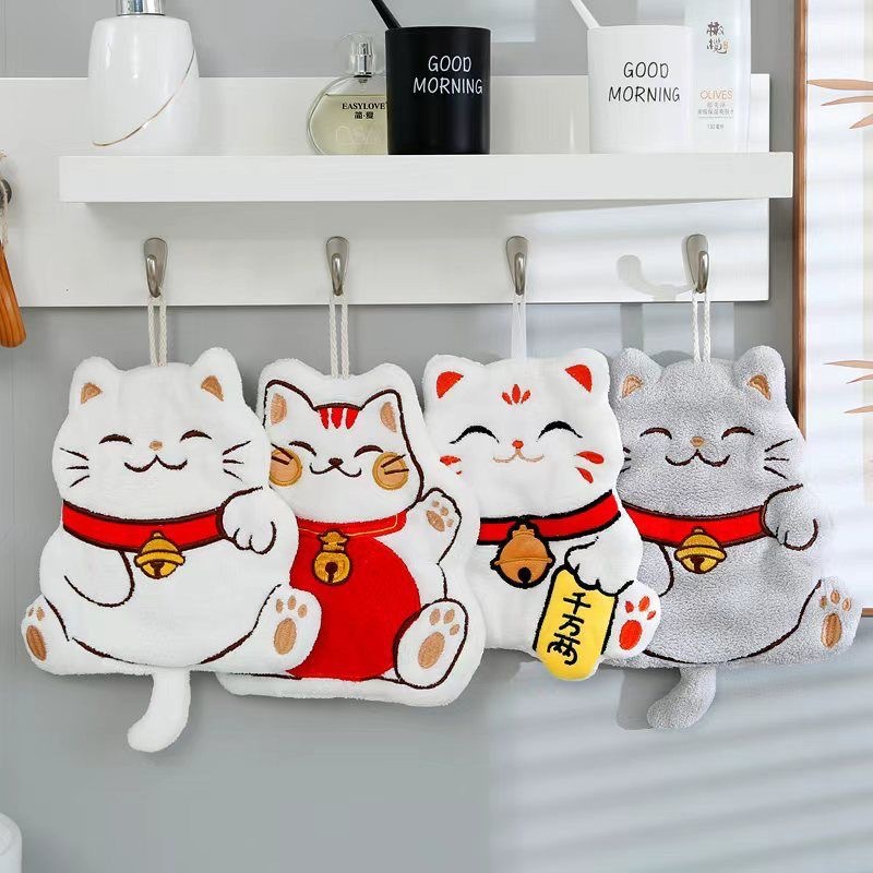 루시드 고양이 벽걸이 편리한 핸드 타월 귀여운 어린이 화장실 및 주방 이중 사용 만화 타월