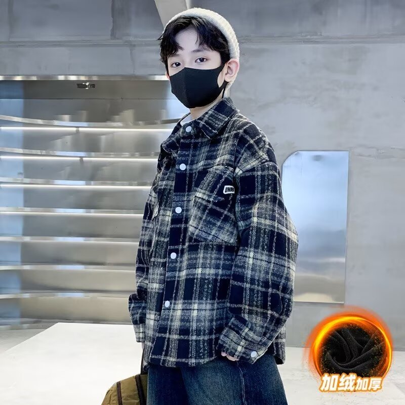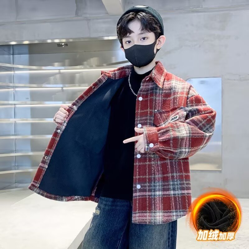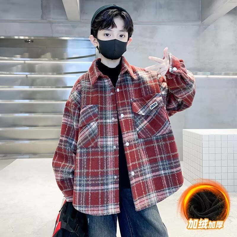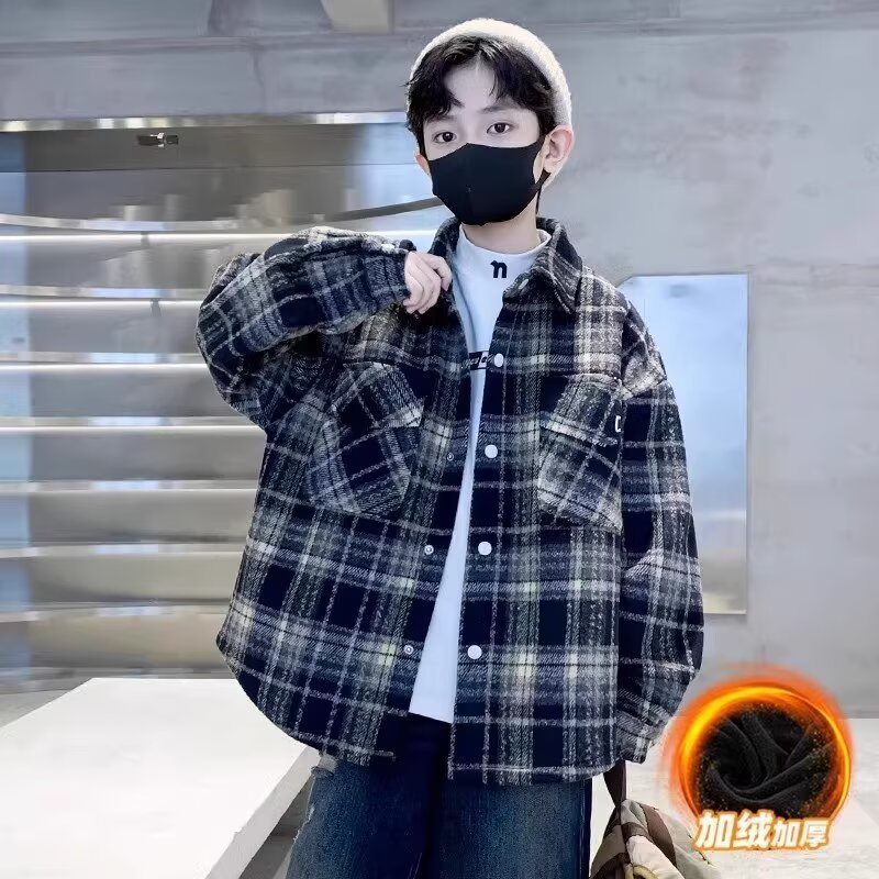 소년의 겨울 벨벳 재킷 2024 새로운 어린이 겨울 착용 중추와 겨울 셔츠 상단 두껍게스토어 가기