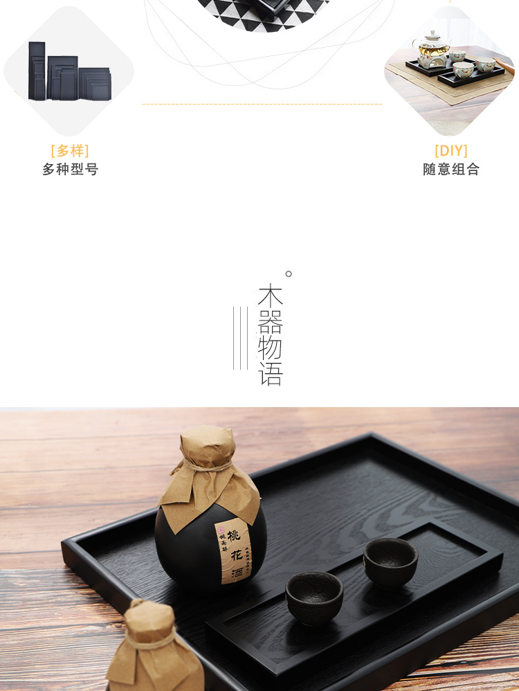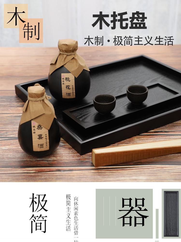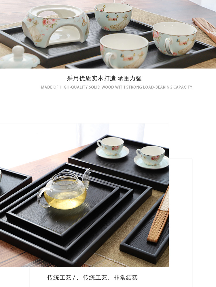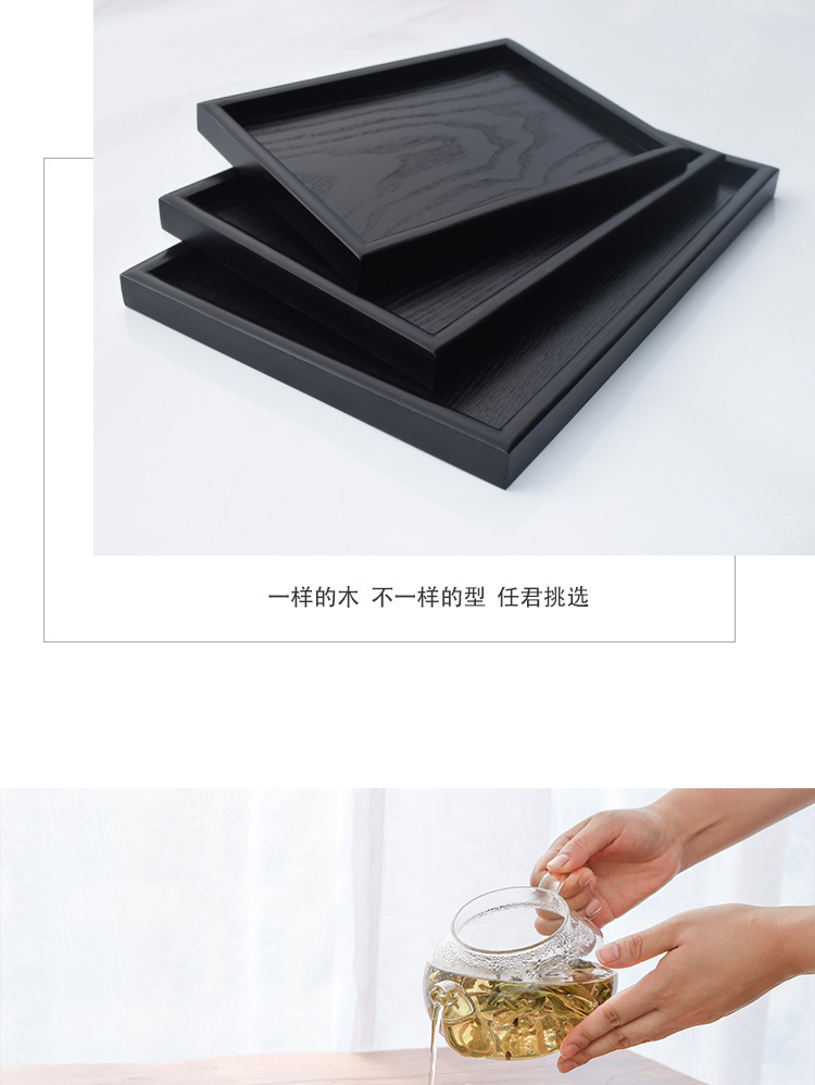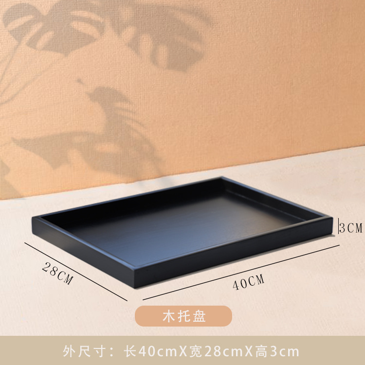 공장 블랙 트레이 우드 그레인 직사각형 상업용 가정용 솔리드 우드 티 트레이 디너 트레이 티 세트 과일 트레이 저장 트레이스토어 가기