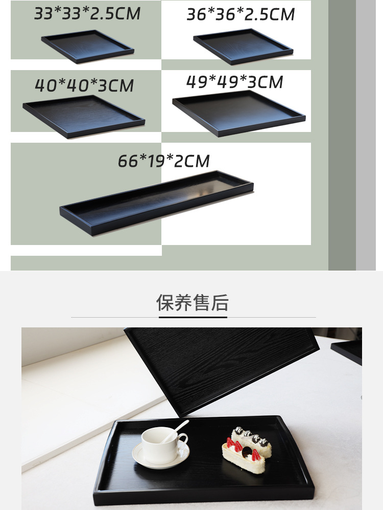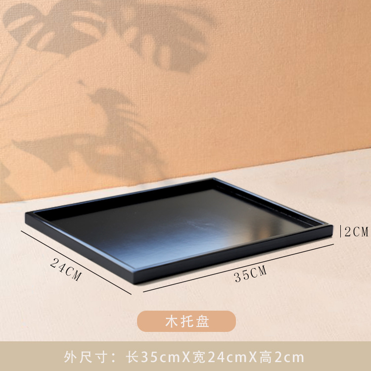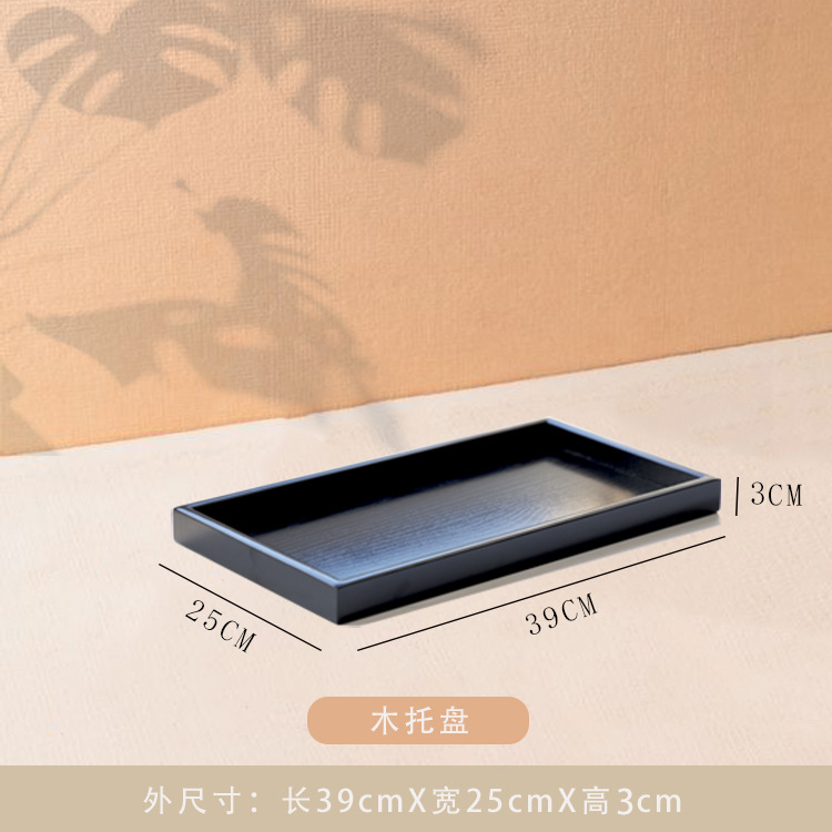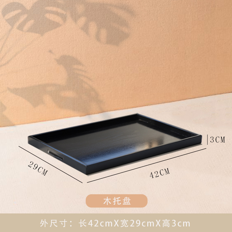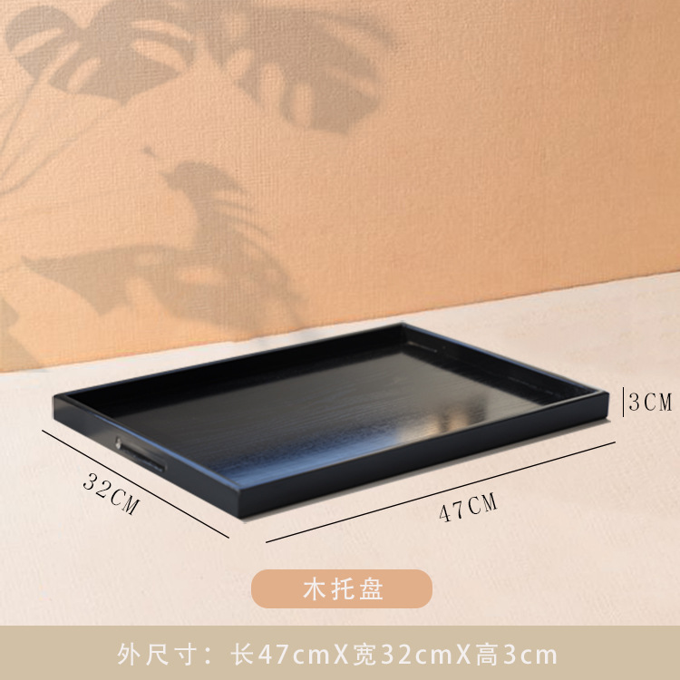 공장 블랙 트레이 우드 그레인 직사각형 상업용 가정용 솔리드 우드 티 트레이 디너 트레이 티 세트 과일 트레이 저장 트레이
