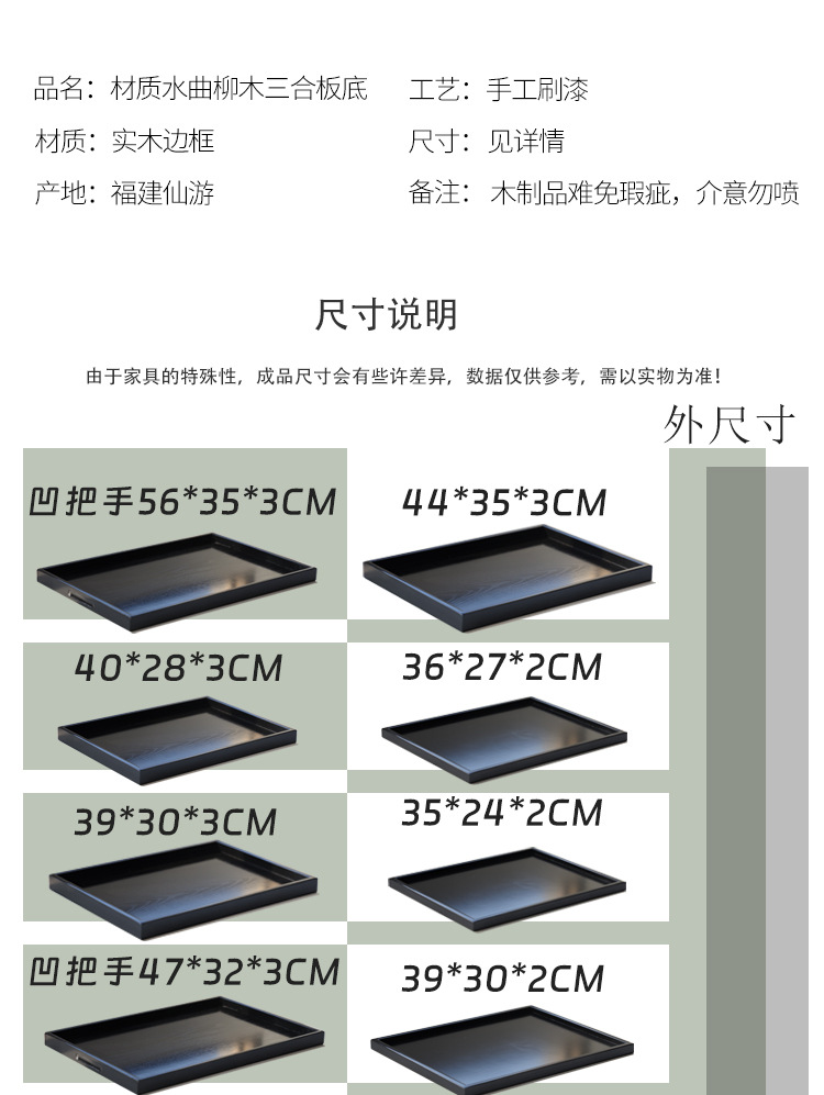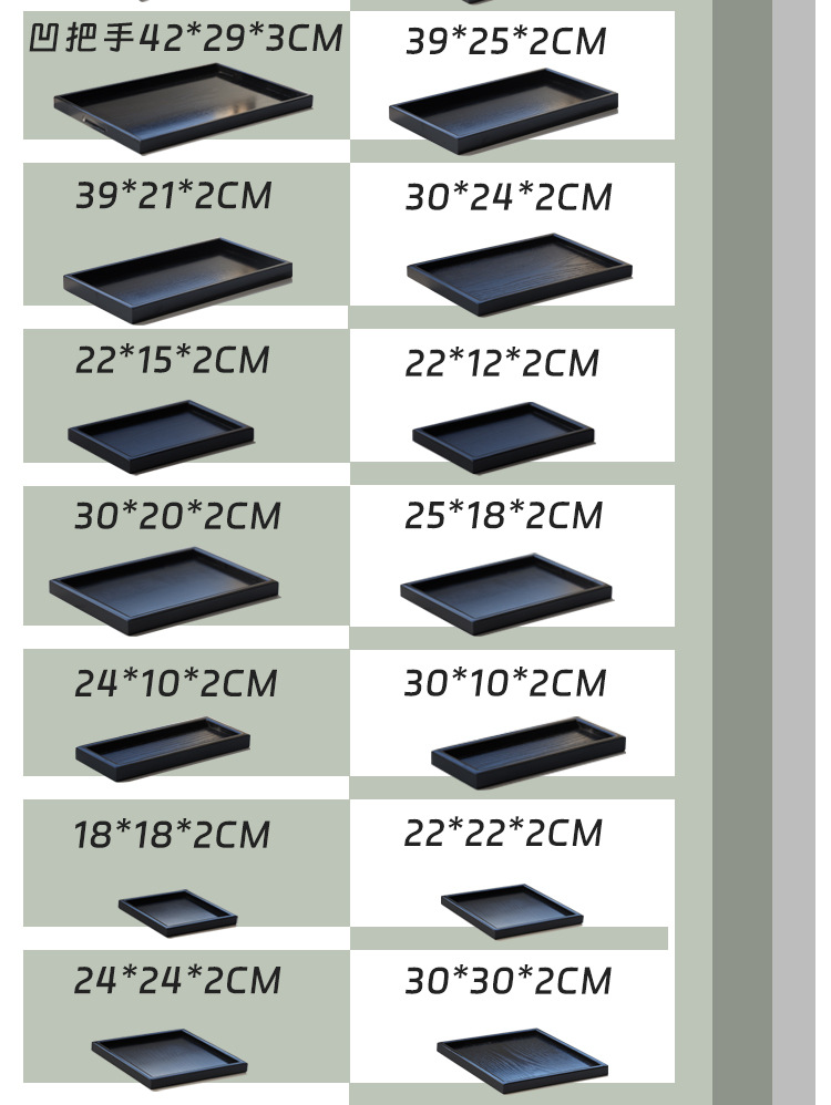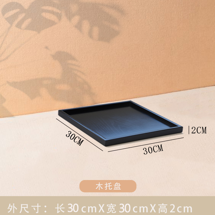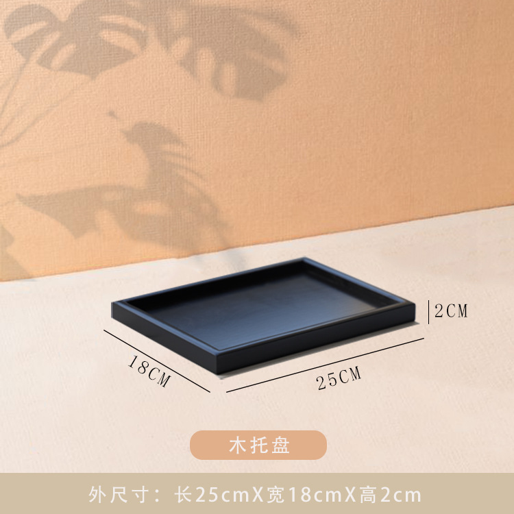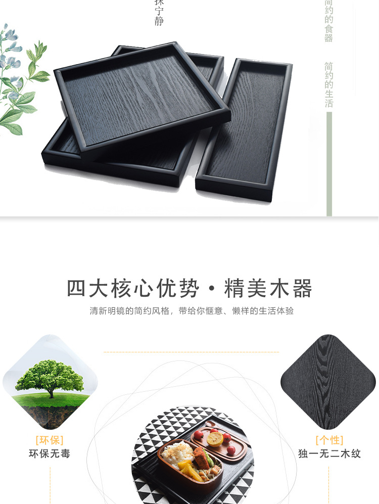 공장 블랙 트레이 우드 그레인 직사각형 상업용 가정용 솔리드 우드 티 트레이 디너 트레이 티 세트 과일 트레이 저장 트레이