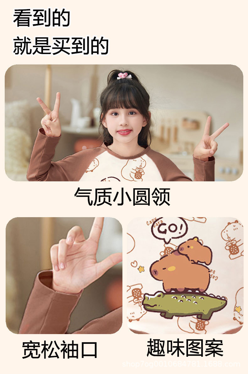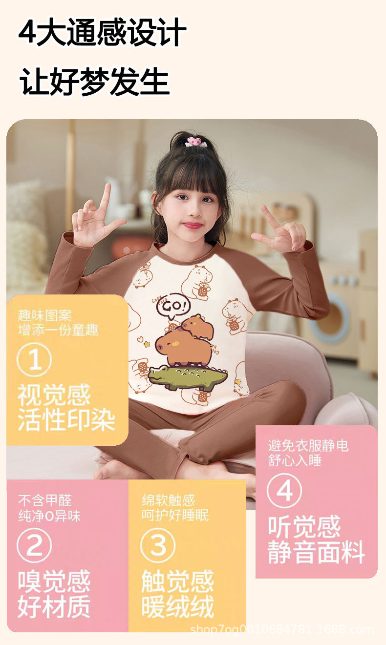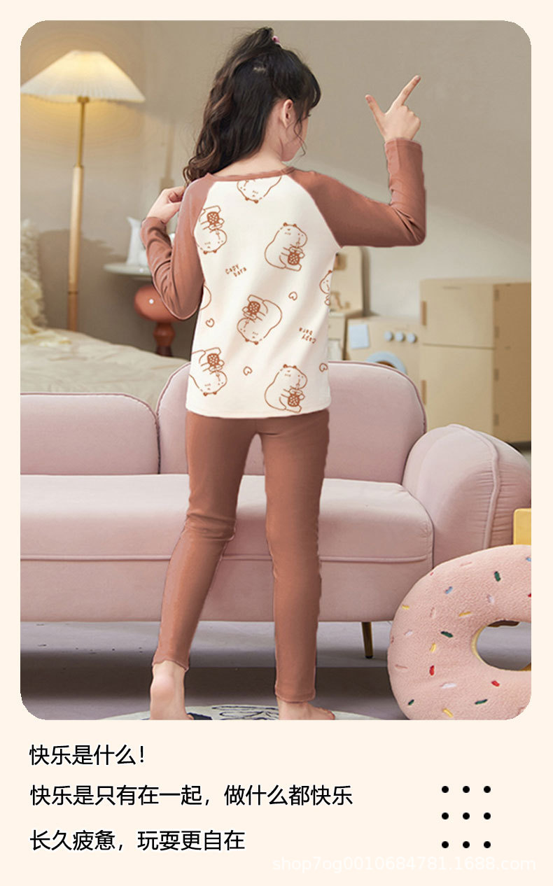 De Rong 어린이 열 속옷 세트 어린이 가을 및 겨울 병 옷 및 바지 학생의 귀여운 홈 옷스토어 가기