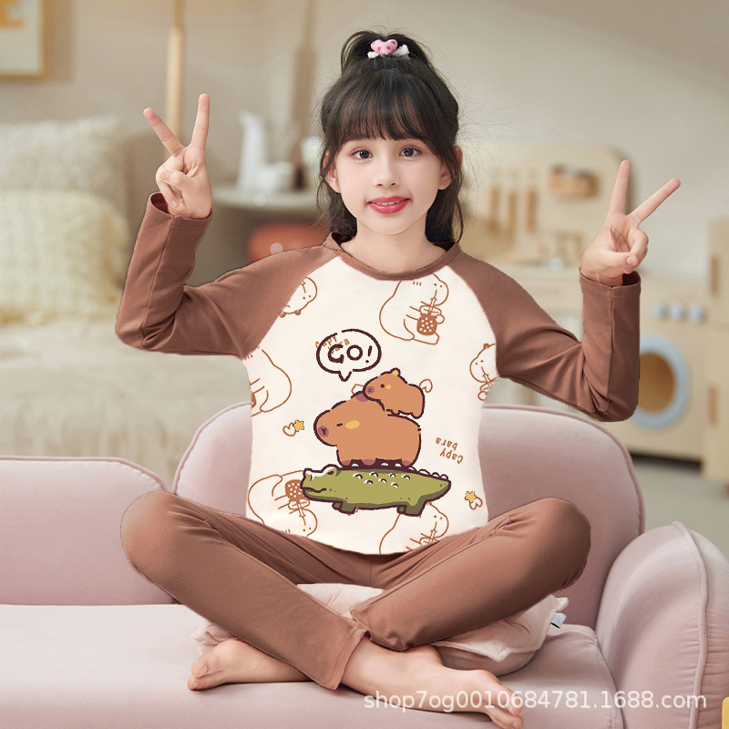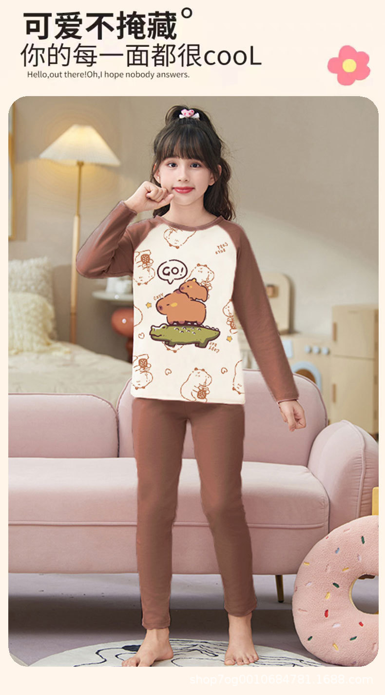 De Rong 어린이 열 속옷 세트 어린이 가을 및 겨울 병 옷 및 바지 학생의 귀여운 홈 옷