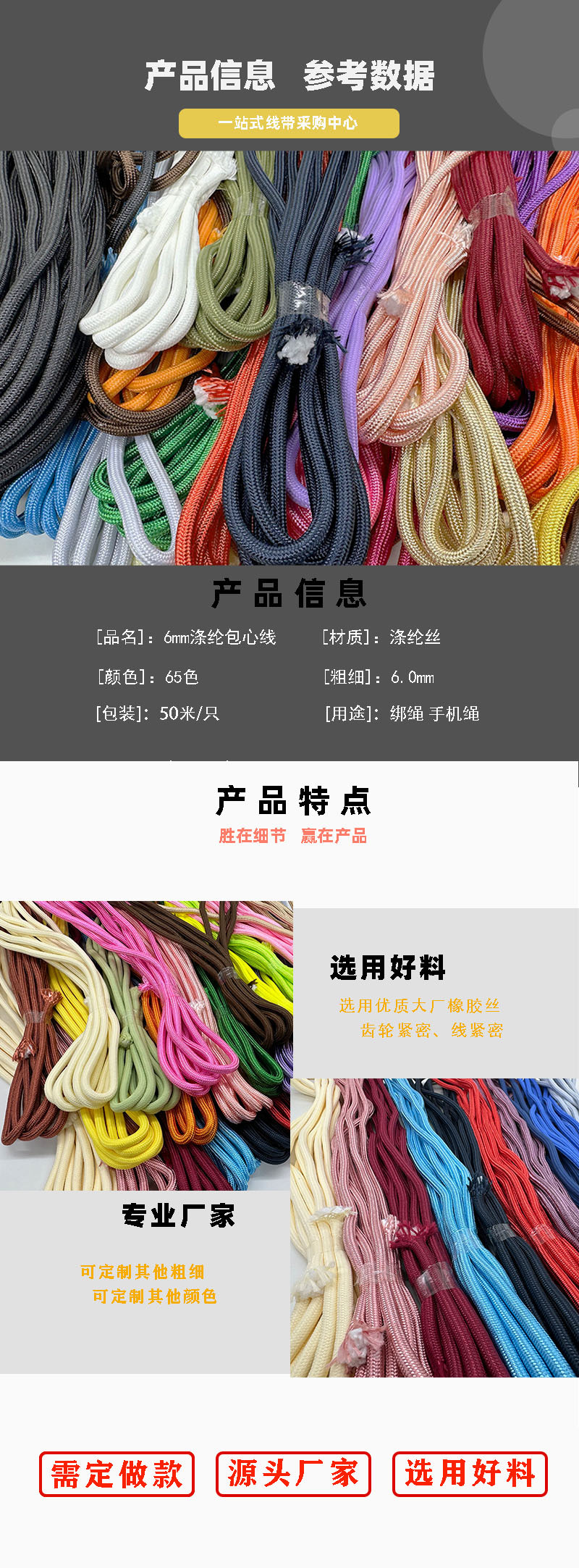 6mm 둥근 로프 랩 실 휴대 전화 끈 손 로프 폴리 에스테르 펜던트 로프 목 슬렁 밧줄 두꺼운 강하고 확고한스토어 가기