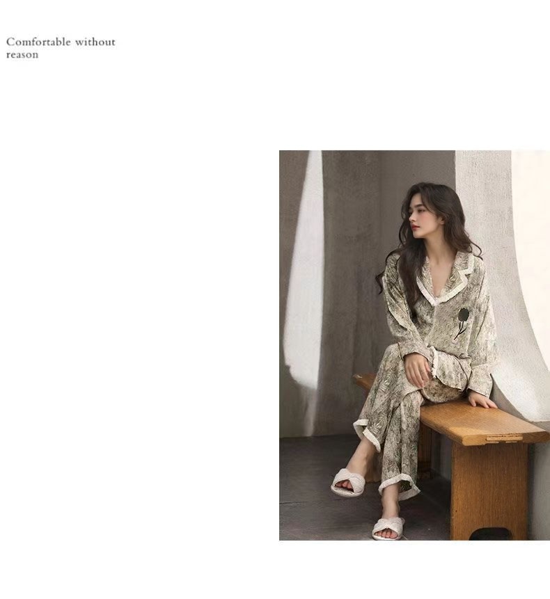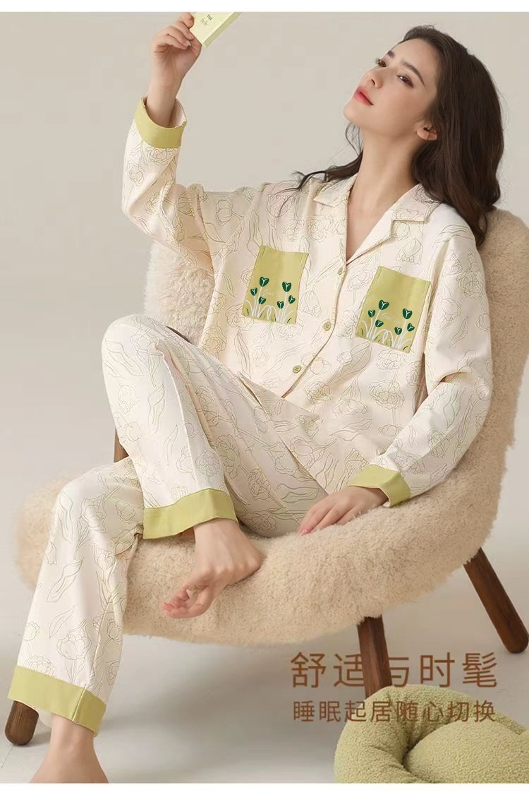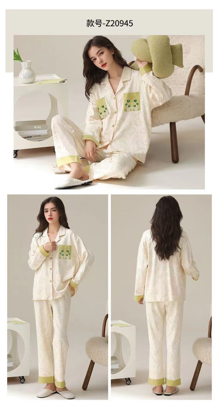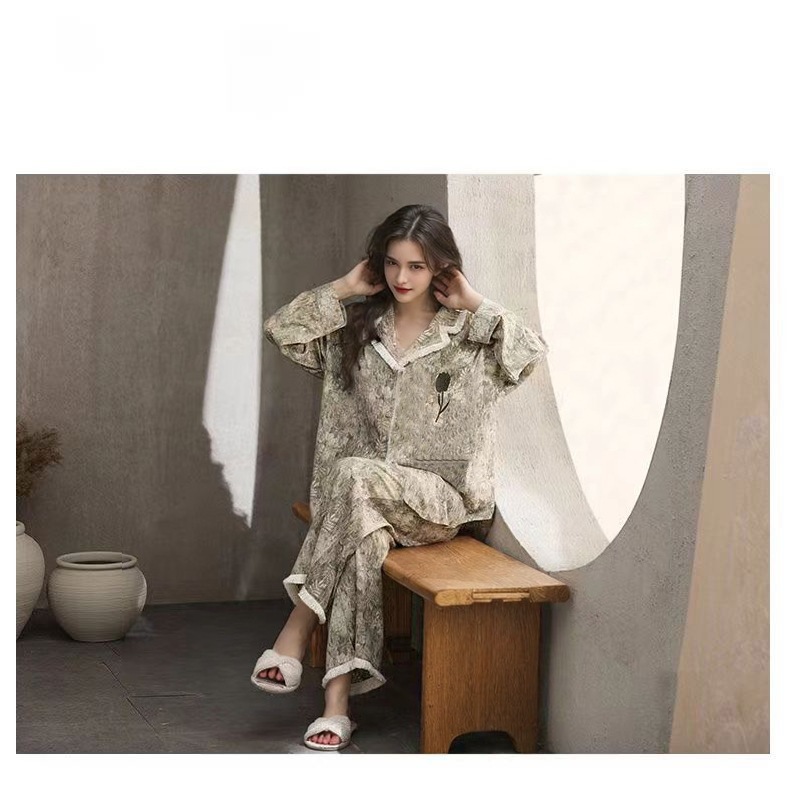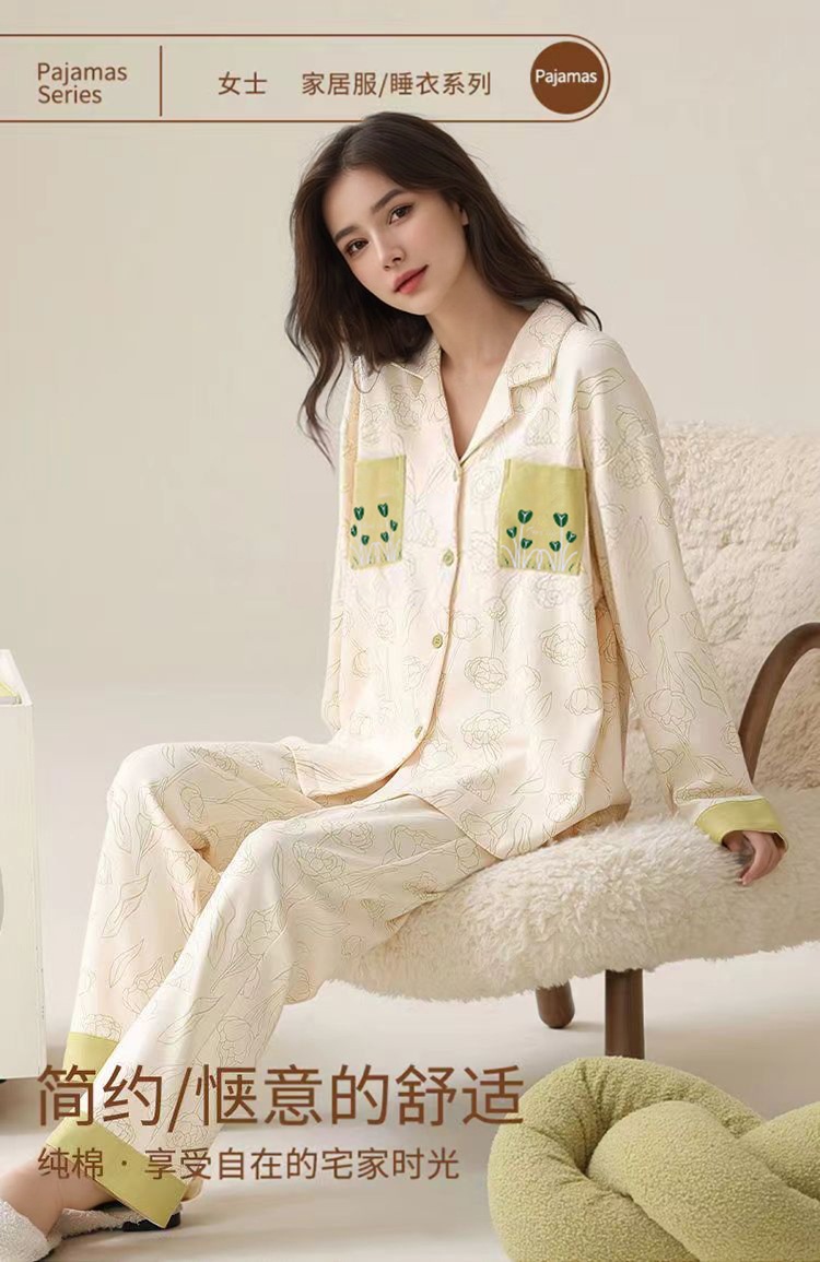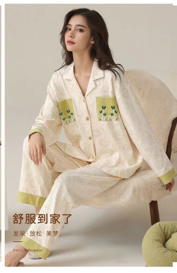 가슴 패드가 달린 면 잠옷 여성의 봄과 가을 긴 소매 2024 새로운 플러스 사이즈 가을 및 겨울 홈 옷 세트 입을 수 있습니다스토어 가기
