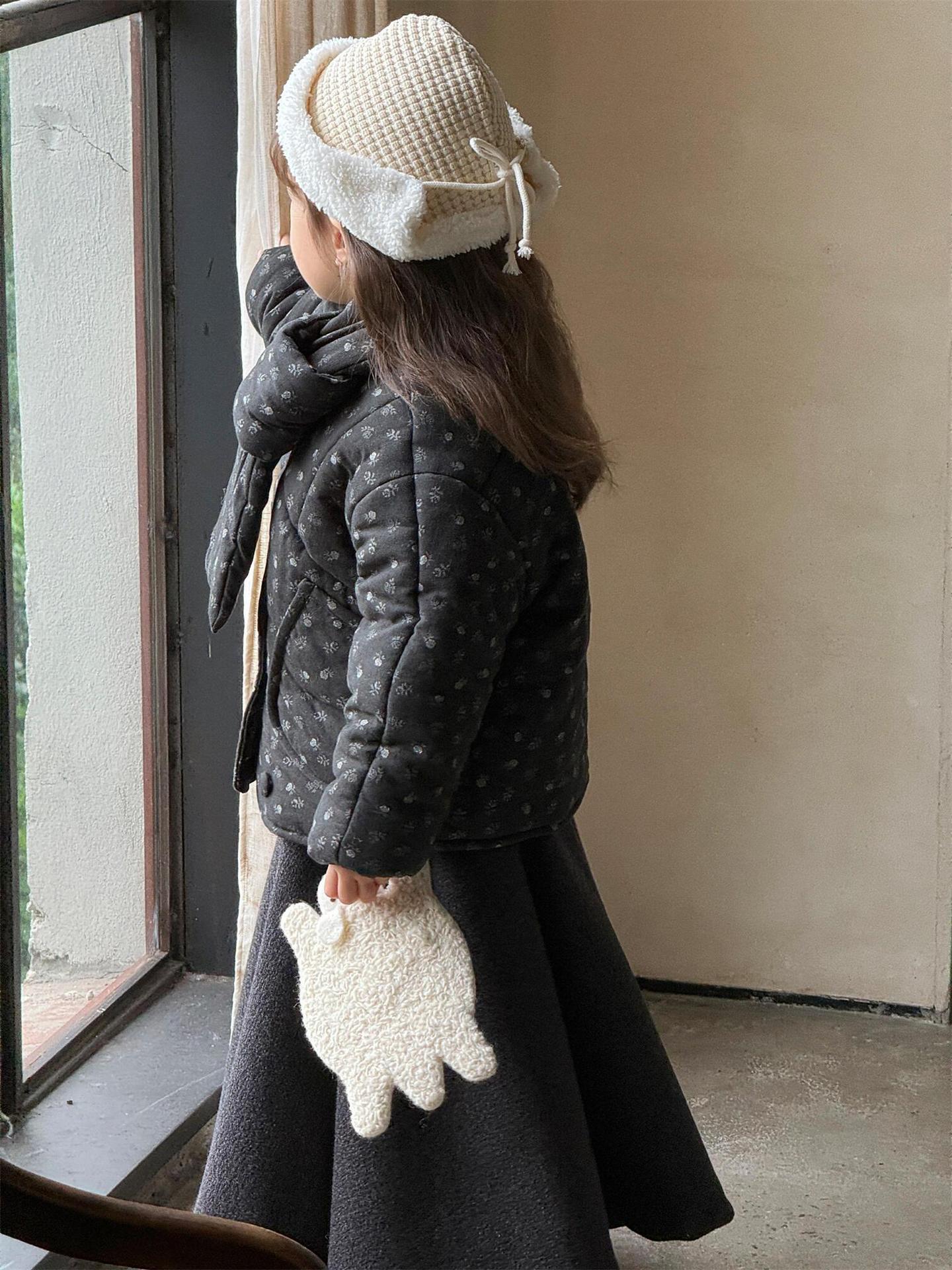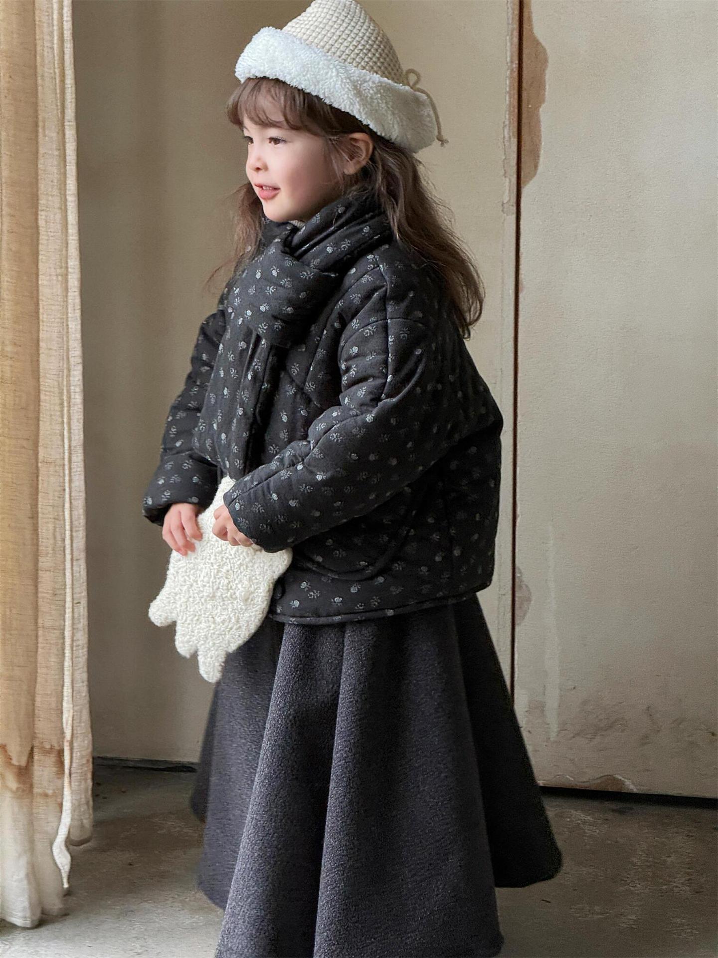 뾰족한 계란 한국 아동복 2024 년 겨울 새 여학생 자켓 복고풍 꽃면 패딩 두꺼운 면 패딩 자켓스토어 가기
