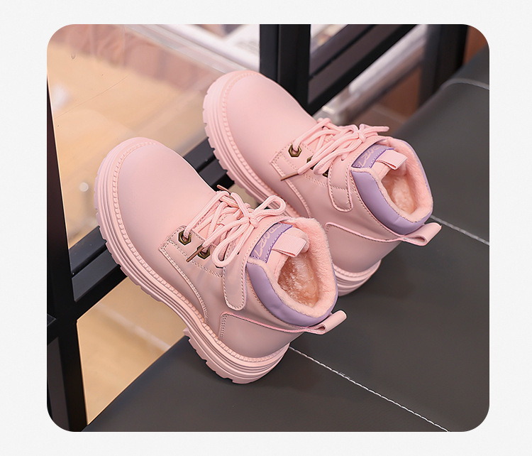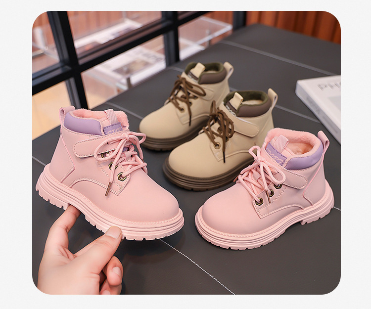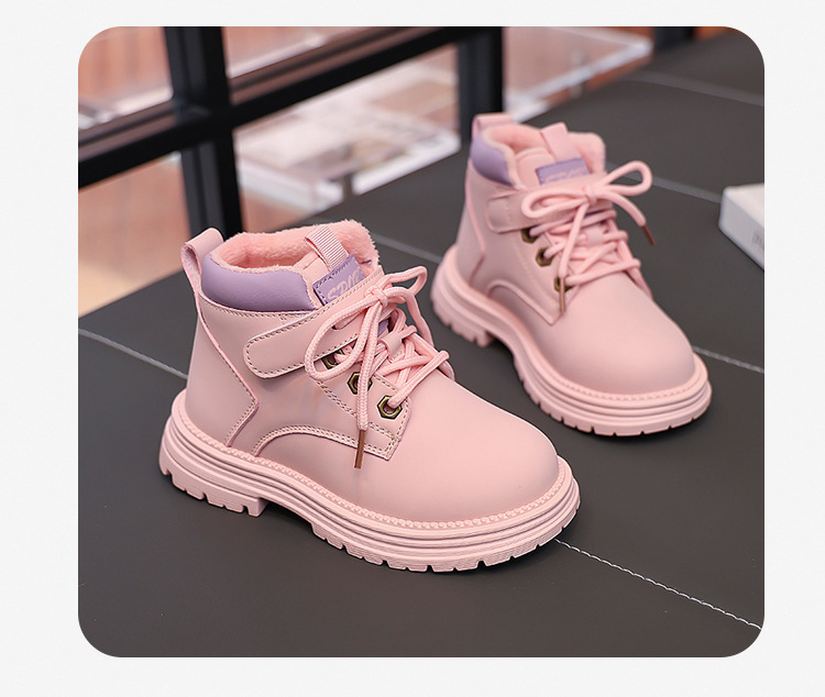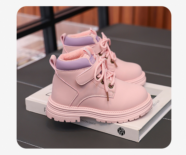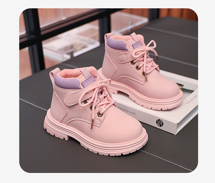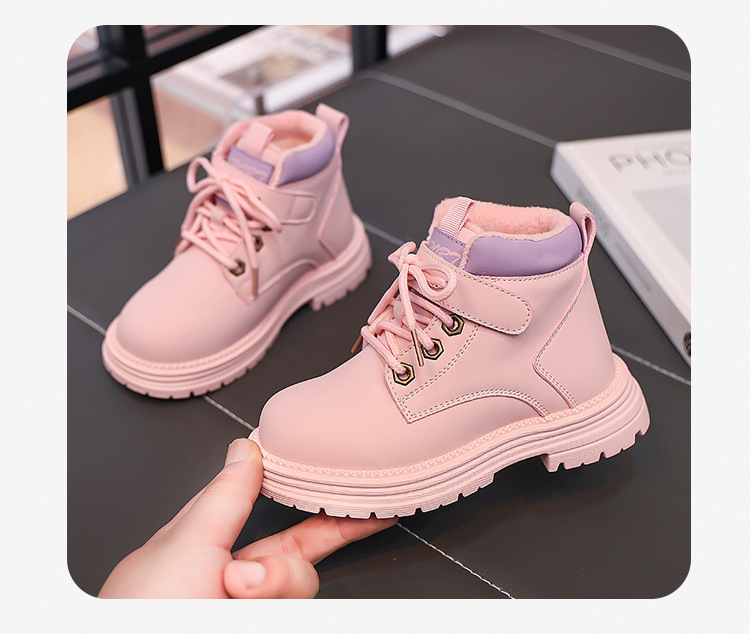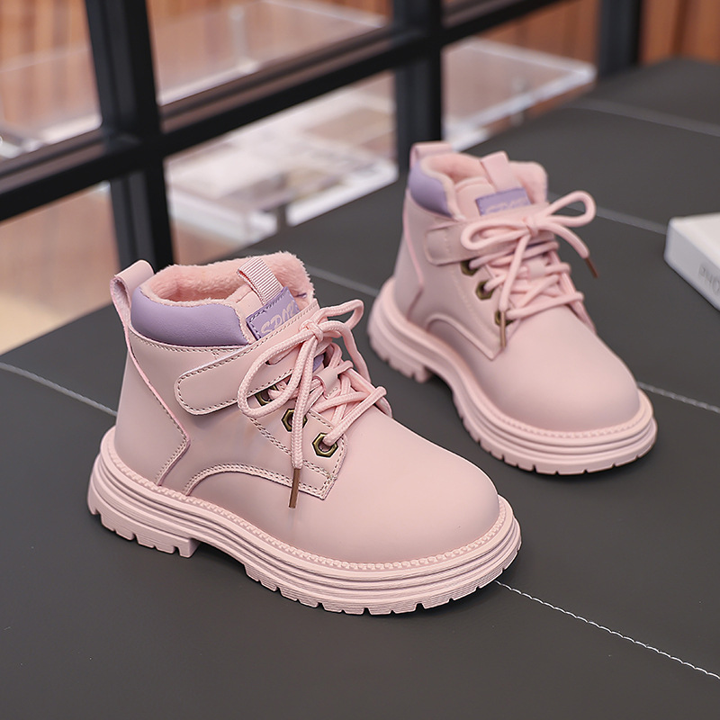 어린이 마틴 부츠 겨울 새 여아 기모 두꺼운 발목 부츠 남학생 따뜻한 가죽 부츠 초등학교 학생들의 세련된 코튼 신발