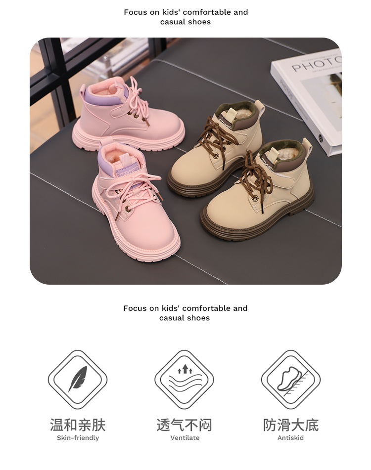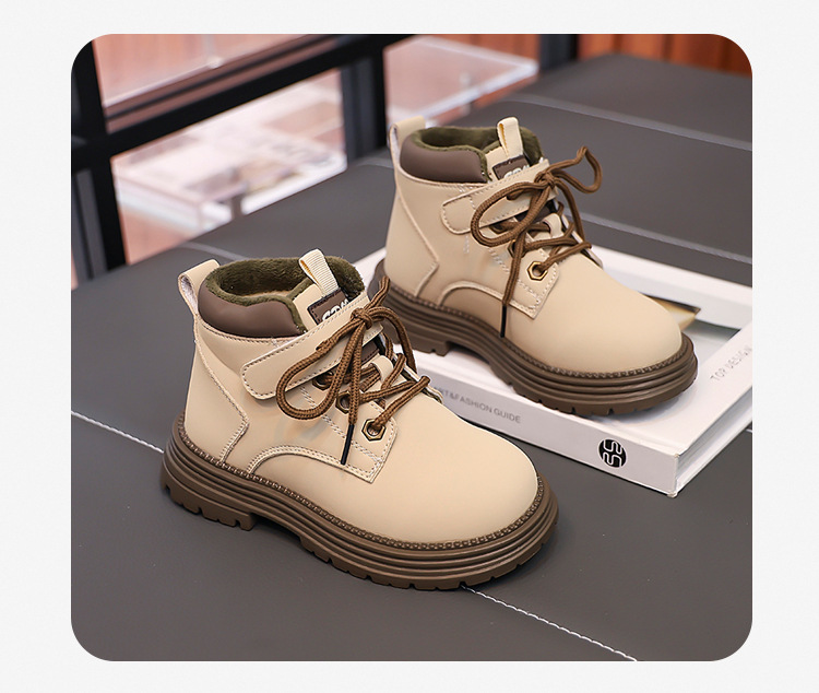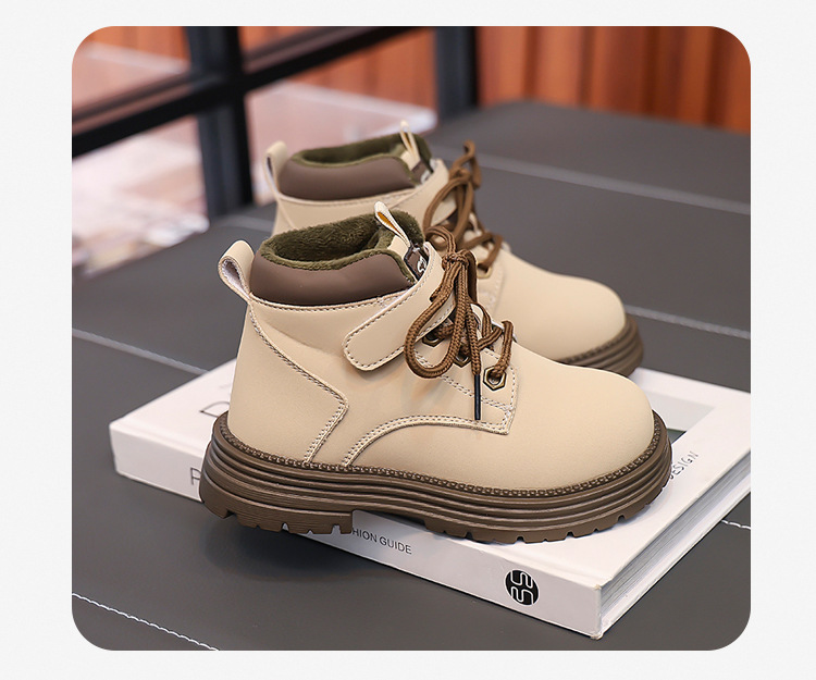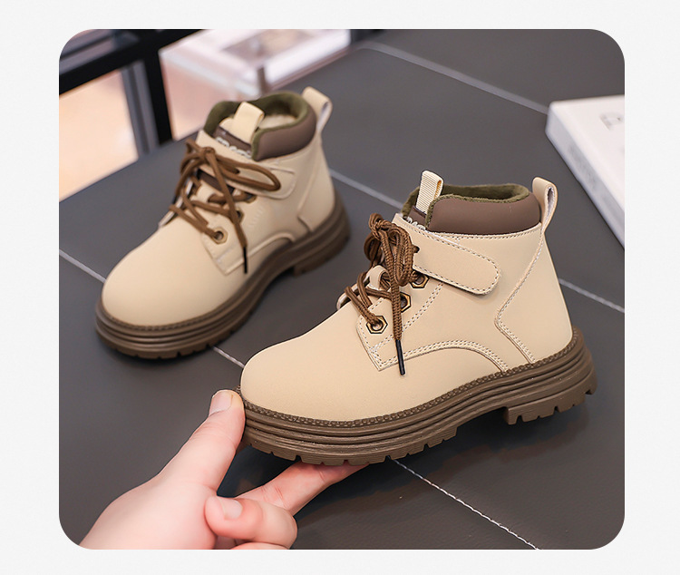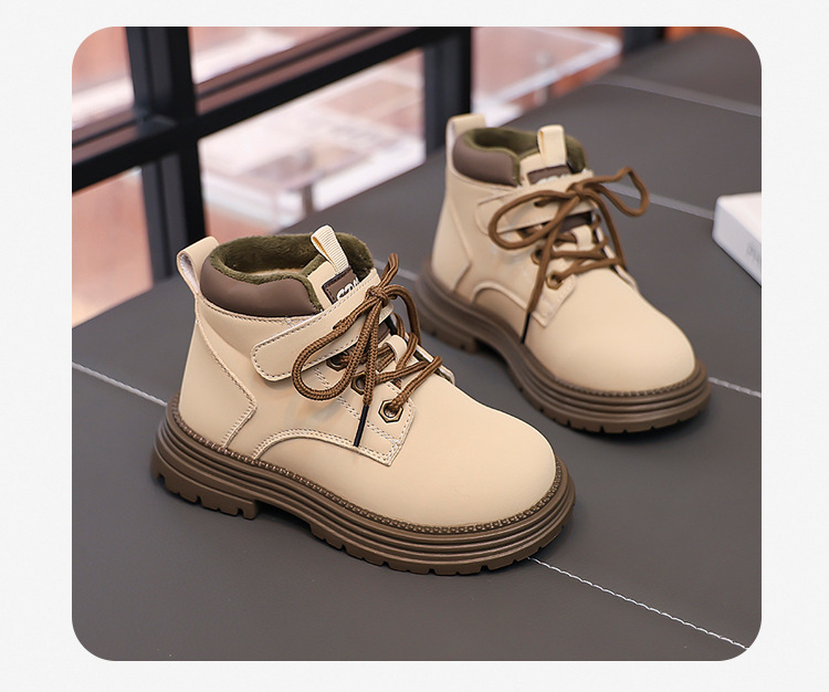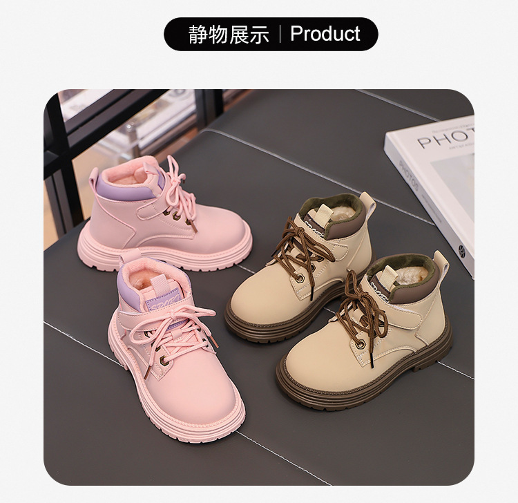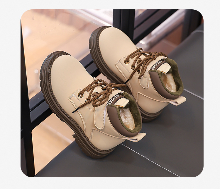 어린이 마틴 부츠 겨울 새 여아 기모 두꺼운 발목 부츠 남학생 따뜻한 가죽 부츠 초등학교 학생들의 세련된 코튼 신발