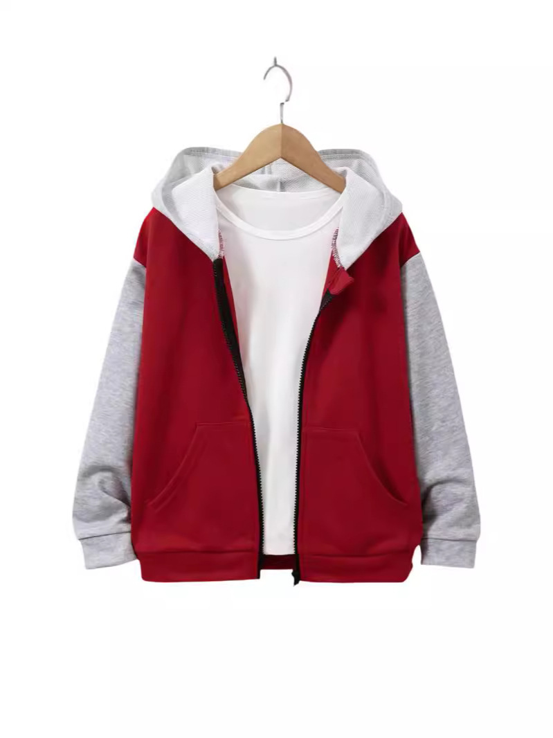 돼지 꽃 의류 소년 가을과 겨울 패션 긴 소매 단색 캐주얼 중 큰 어린이 8-12 세 후드 자켓