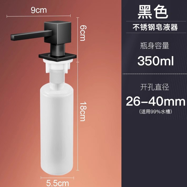 • 블랙 [304 사각 프레싱 헤드 + 350ML 비누 병] 304 스테인레스 스틸 사각
